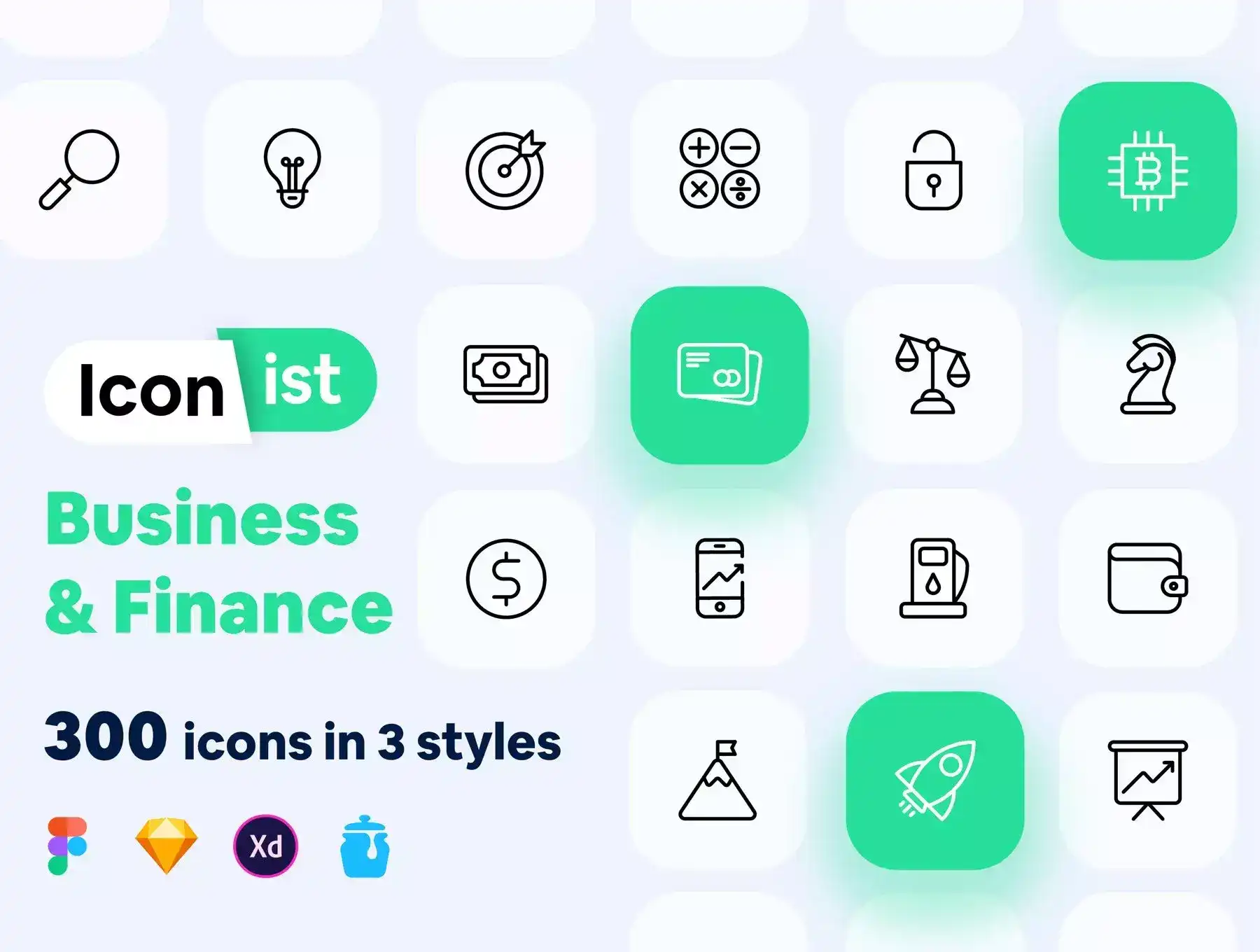 The business & finance icons set is made of 300 icons in 3 styles (outline, glyph, two-tone) and it is appropriate for designing applications and websites with business & finance themes.