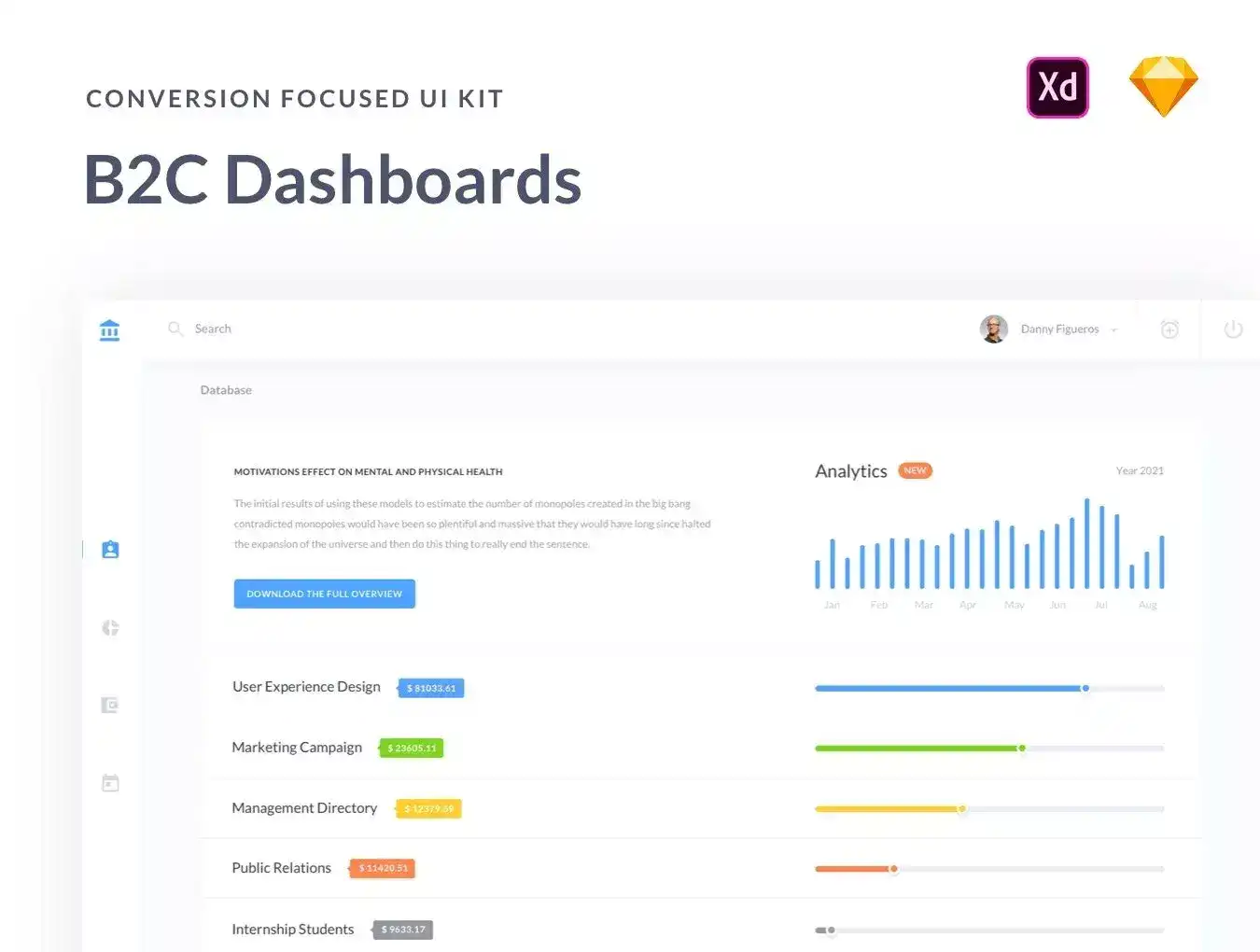 40 Dashboard and Onboarding UI Screens to help you design beautiful interfaces for your clients or for your personal projects. The Sketch and Adobe XD files comes with Lato, which is a Google Free Web Font. This pack will allow you to create top-notch UX experiences in a matter of hours.. the price point is literally a steal for such an asset!