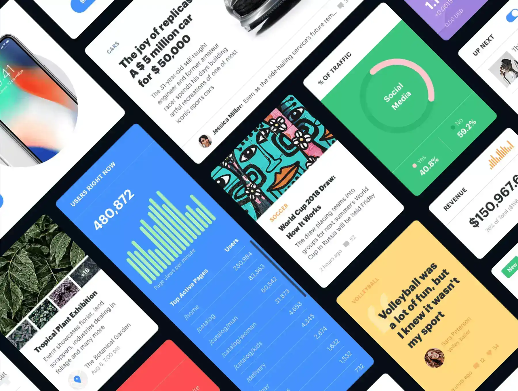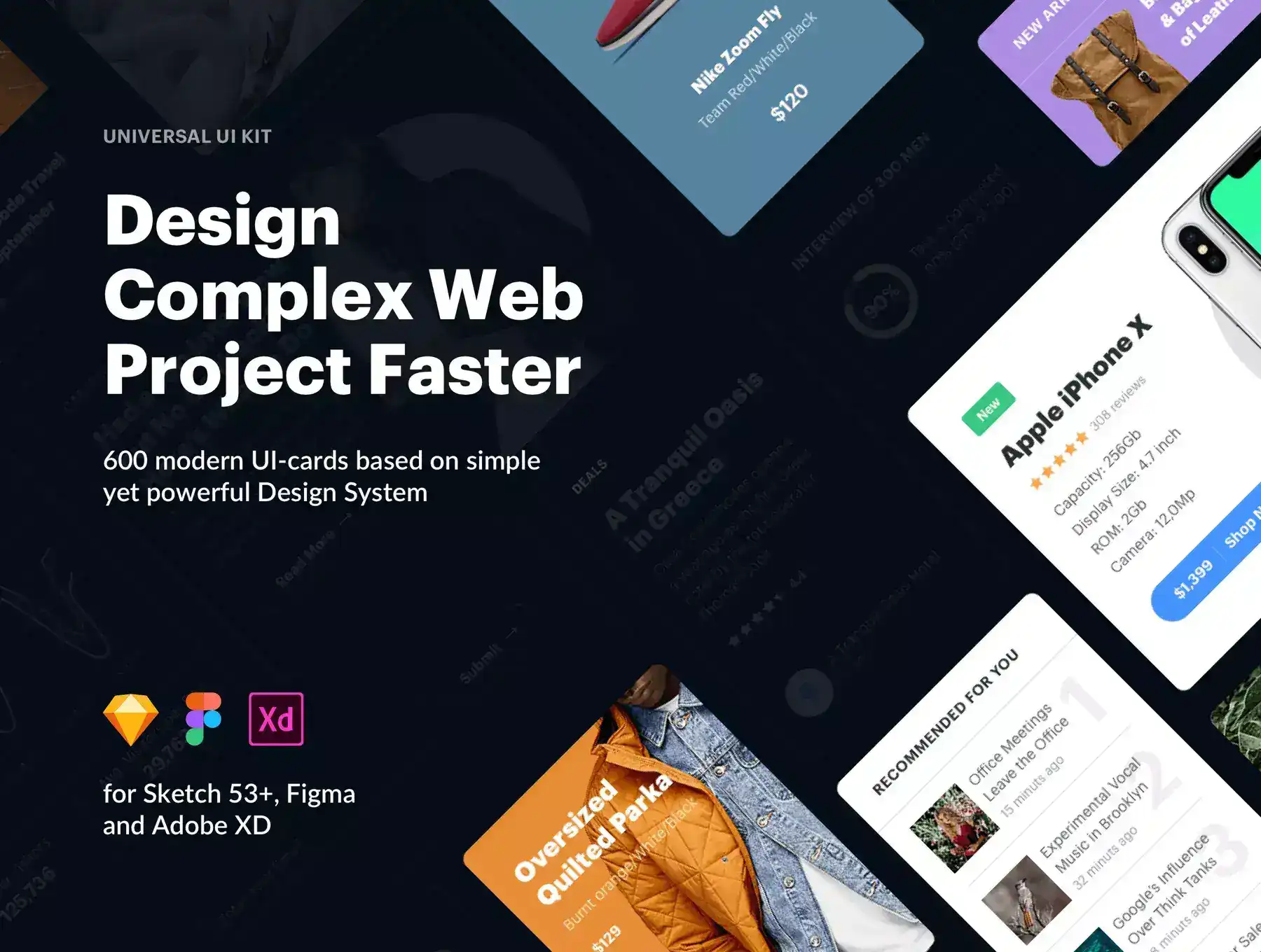 Universal is huge pack of UI cards from popular categories that will help you quickly design project at ease. All components are made on the basis of simple yet powerful Design System and you can customize it to your style.