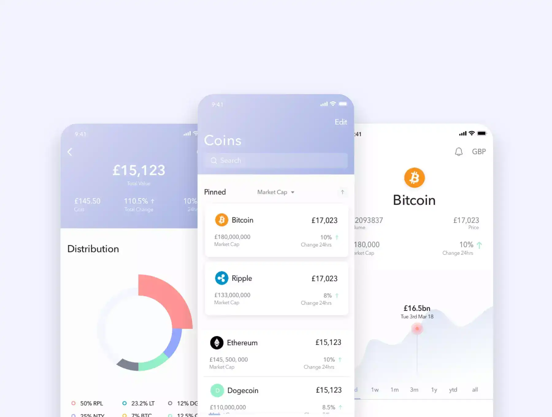 CoinGauge is a clean and minimal cryptocurrency app UI Kit. This UI kit is perfect for crypto wallet apps, crypto portfolio apps and banking apps. The kit features 18 beautiful, yet detailed screens with highly realistic data visualisation.
