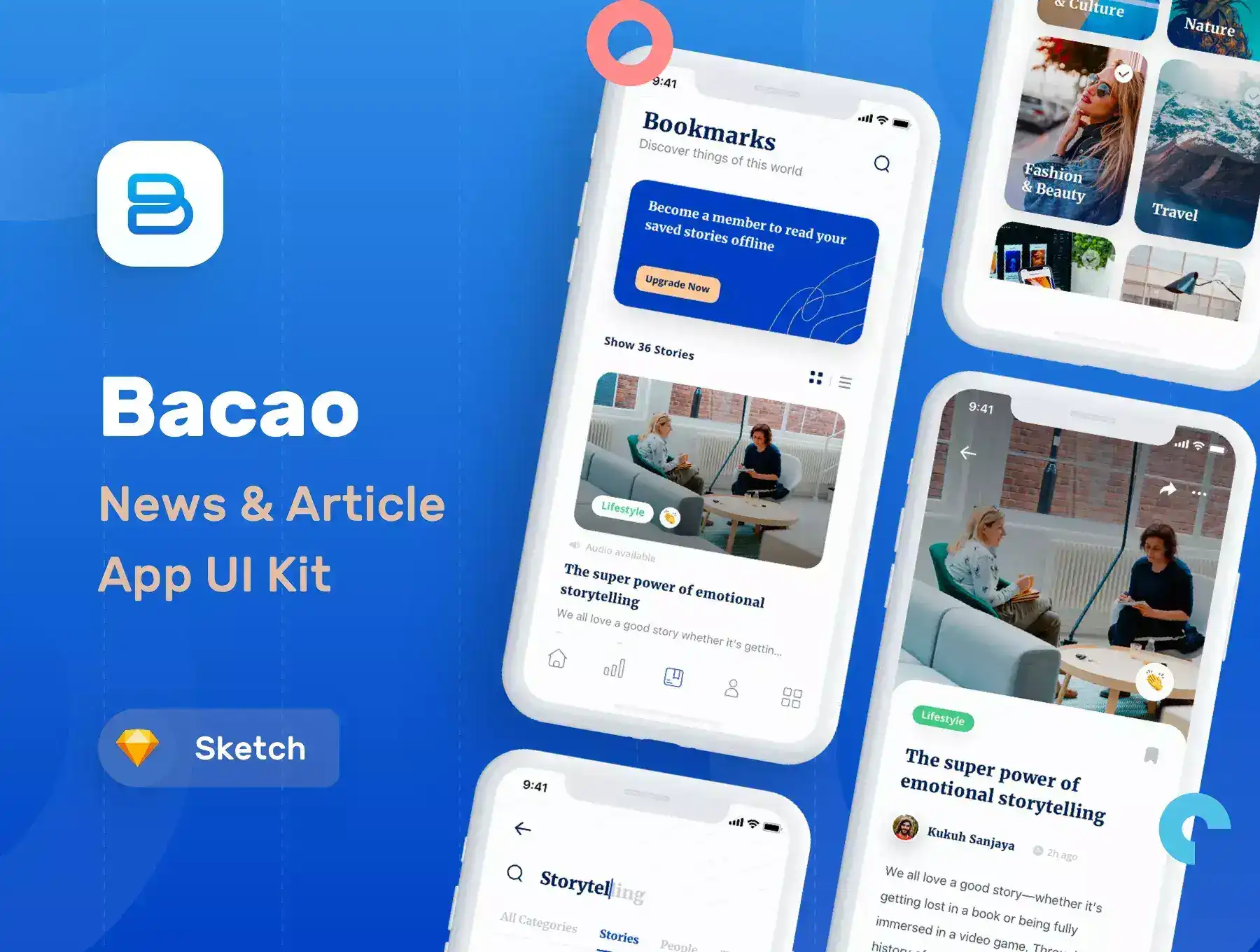 Hey! This is our new product called Bacao. It's 30 screens app concept for reading and news app. We built it carefully to match the need of designers and deliver it with the best result.