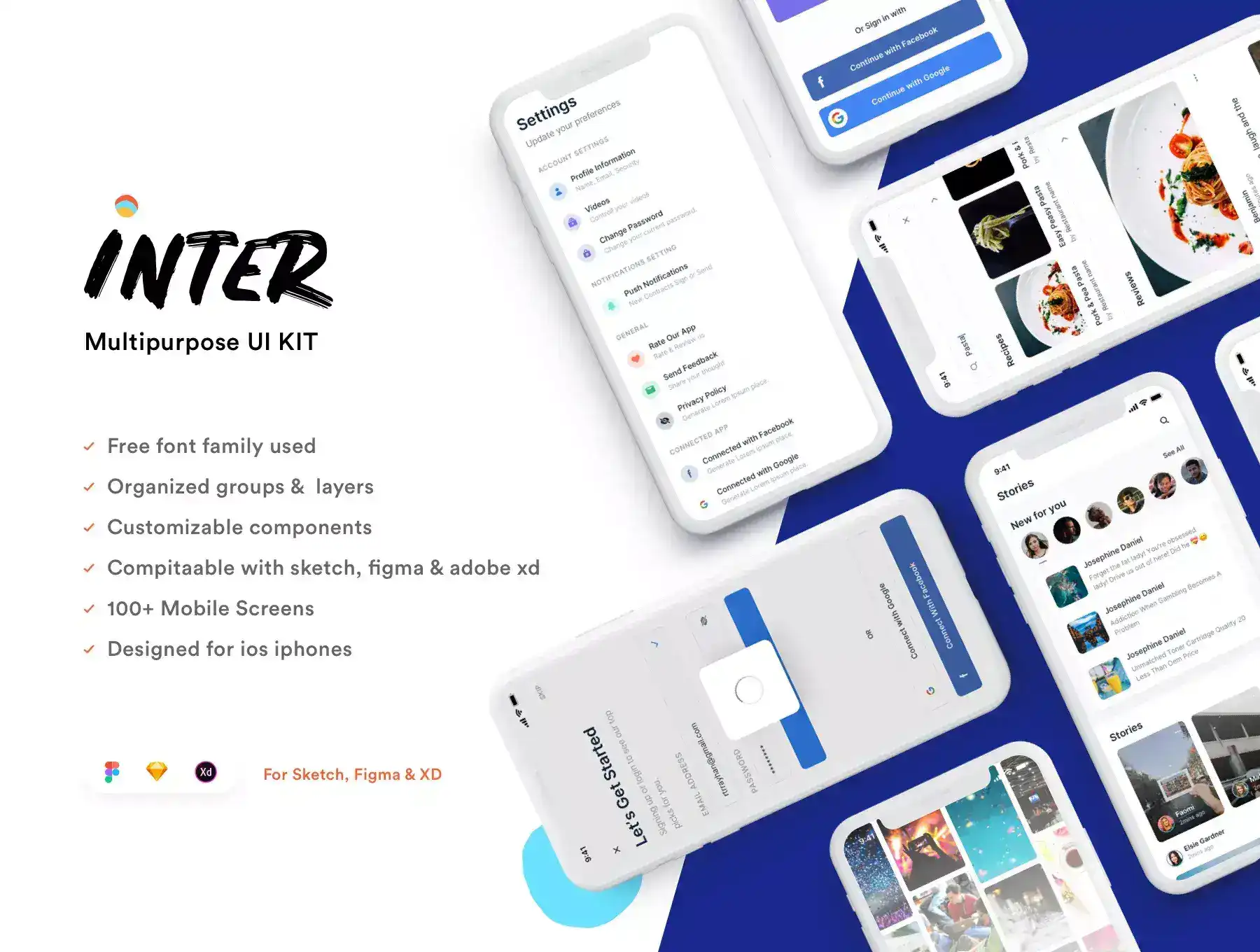 Inter is professionally crafted premium UI help kit by Luova Studio Team. Mega is the iOS UI Help Kit, perfect for the apps based on the Social Media, Messanger, Dashboard, Profiles, Settings, and audio/videe. With our Design System included in this UI Kit, you will be able to speed-up your workflow and save hundreds of hours.