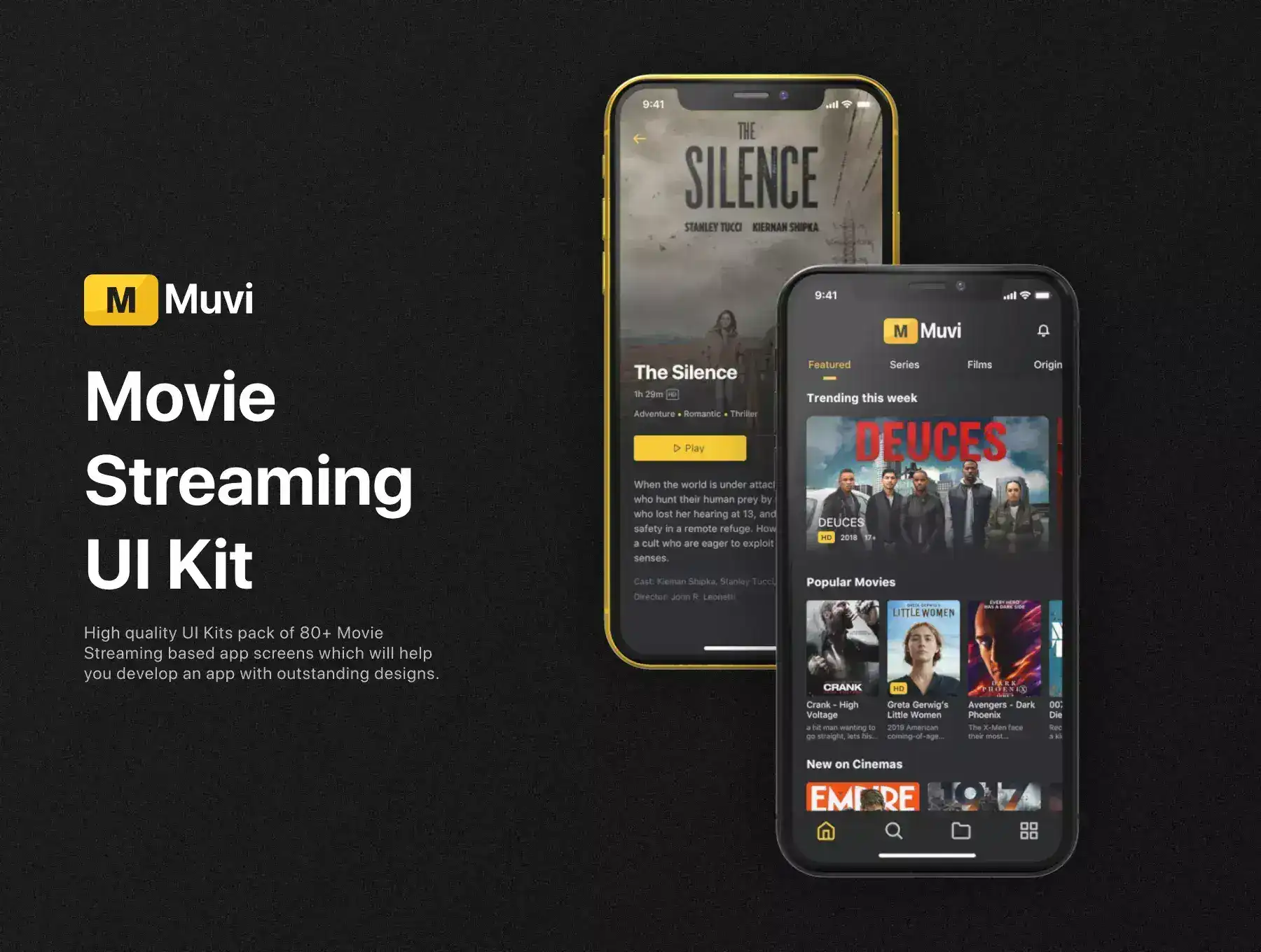 High quality UI Kits pack of 80+ Movie Streaming based app screens which will help you develop an app with outstanding designs.
