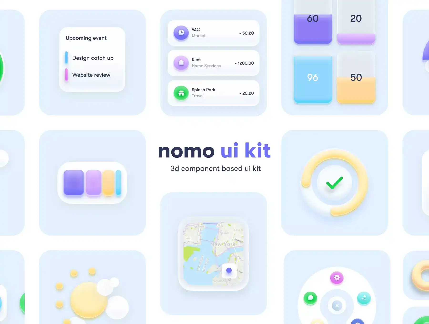 Nomo UI Kit is a high-quality package based on a clean and simple design that includes 20 iOS screen templates designed for Figma and Sketch. It consists of 3D components created using the principles of the shadows.