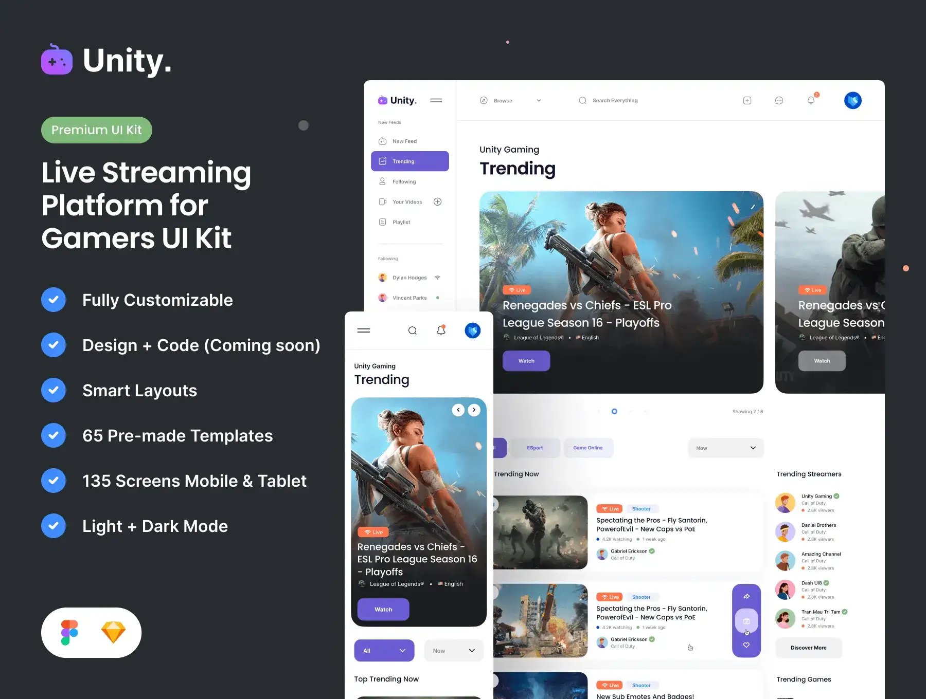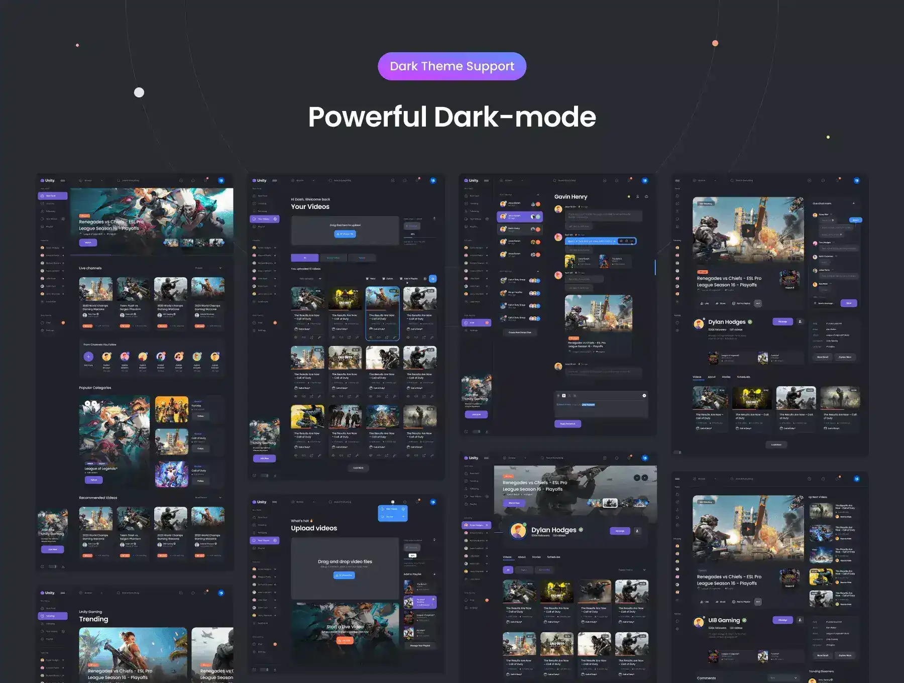Unity Gaming is a clean and minimal dashboard UI Kit targeting a wide variety of use cases for streaming / social gaming platforms and mobile applications in light or dark mode 🔥