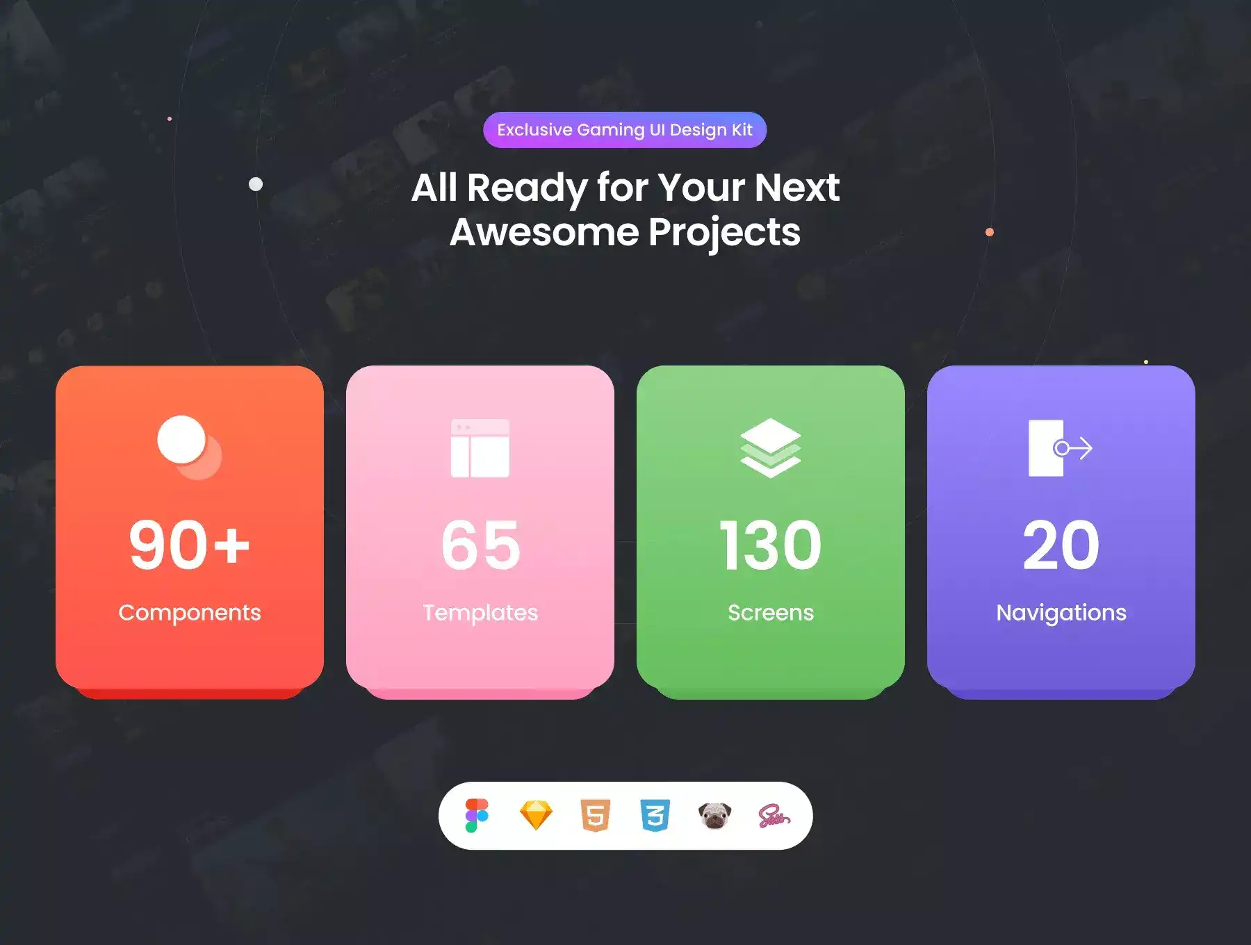 Unity Gaming helps you ideate dashboard projects faster and easier with 65 premade templates, including over 90 component cards linked to symbols, and a global style guide. All elements are fully editable via overrides or you easily deconstruct them if you want to build your own. Additionally, components on both Sketch and Figma are fully resizable to help you build your own dashboard designs with any grid system you like.