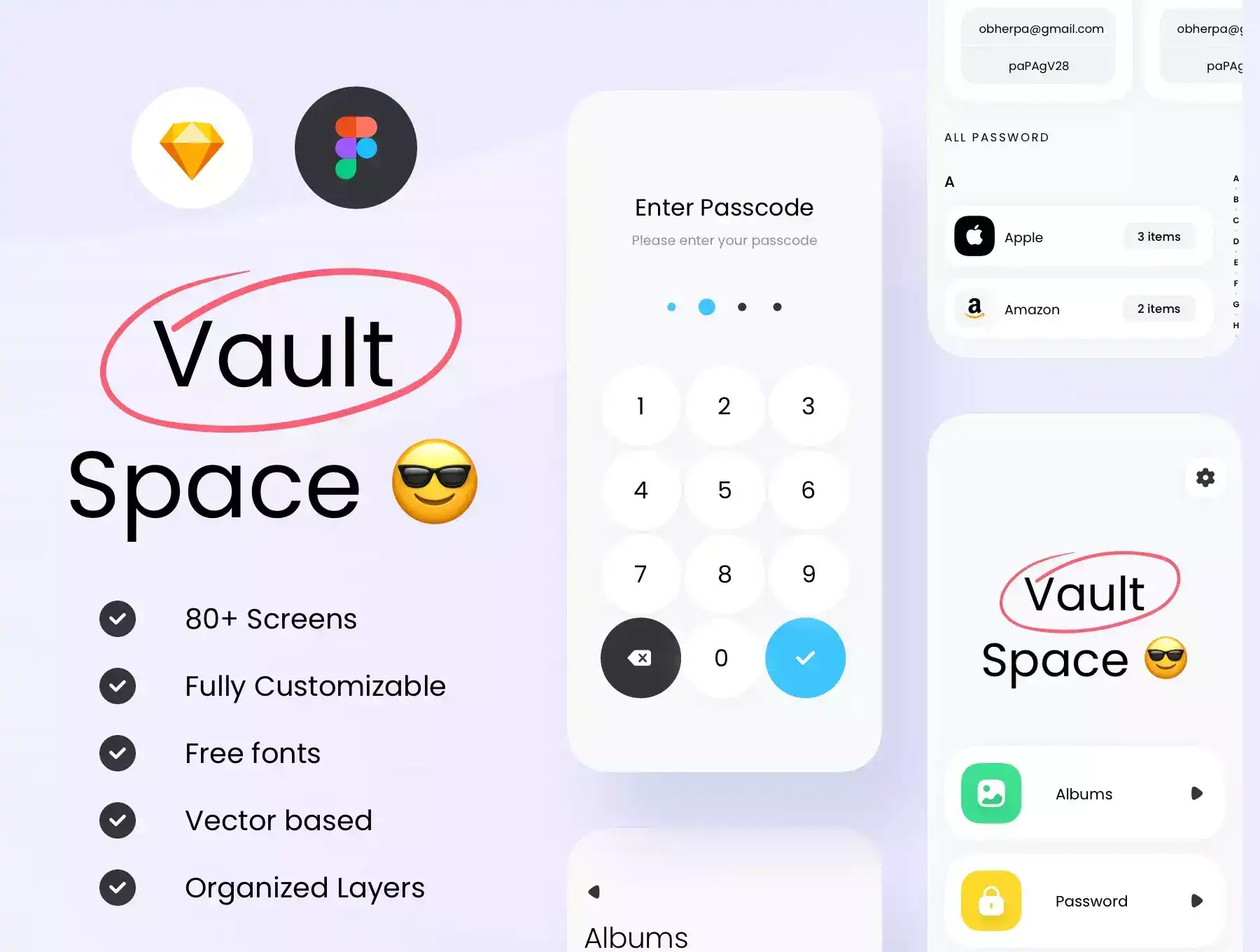 Vault UI Kit is also brilliantly designed, with great care and attention to detail. There are 80 high-quality screen templates included, all created in Sketch and Figma. This modern design template is simple to edit, making designing your next app even simpler!