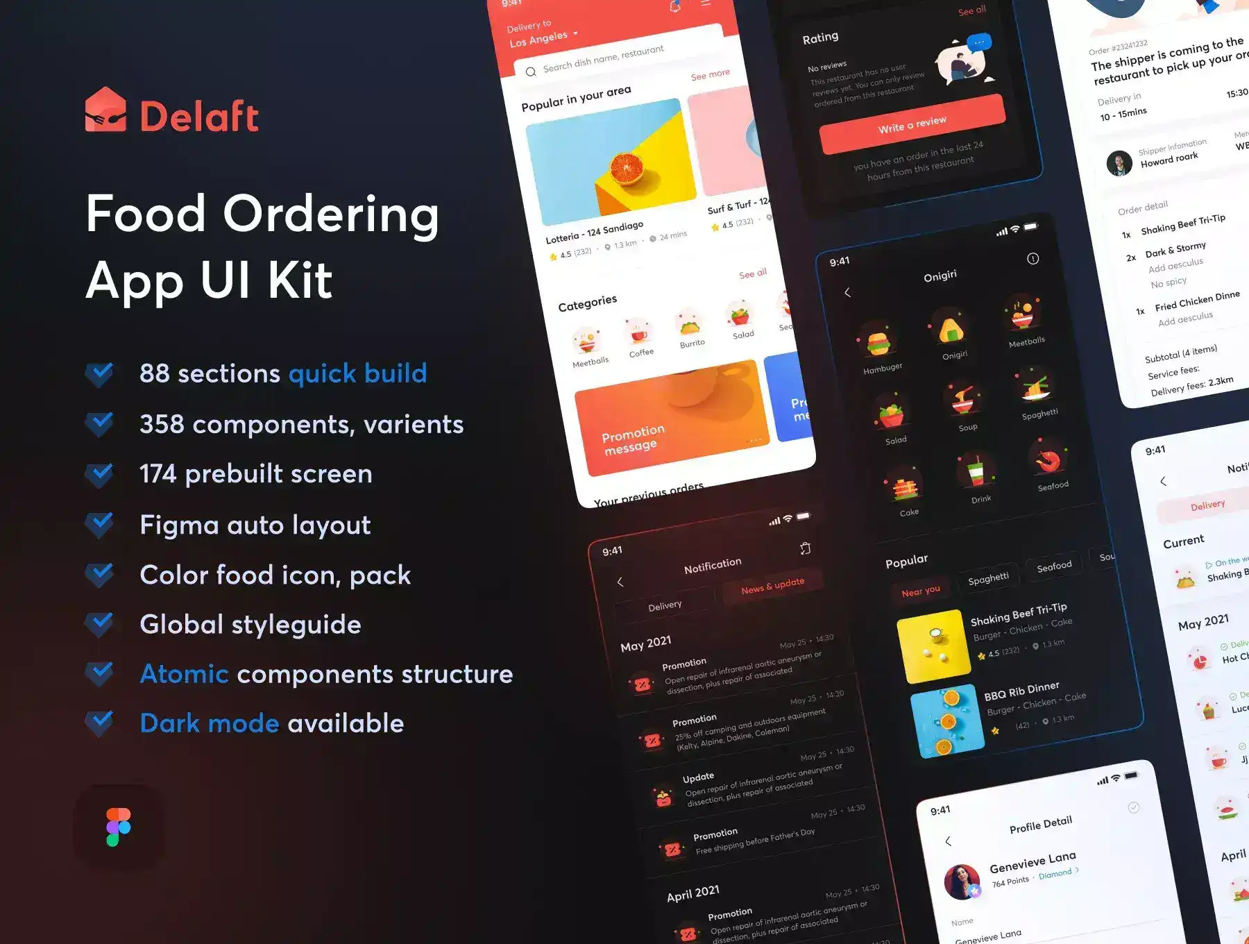 Meet Deaft, a fully-featured UI Design kit for Food Ordering, Online Ordering, Restaurant and Food Delivery App, including exclusive design files and beautiful illustrations editable in Figma.