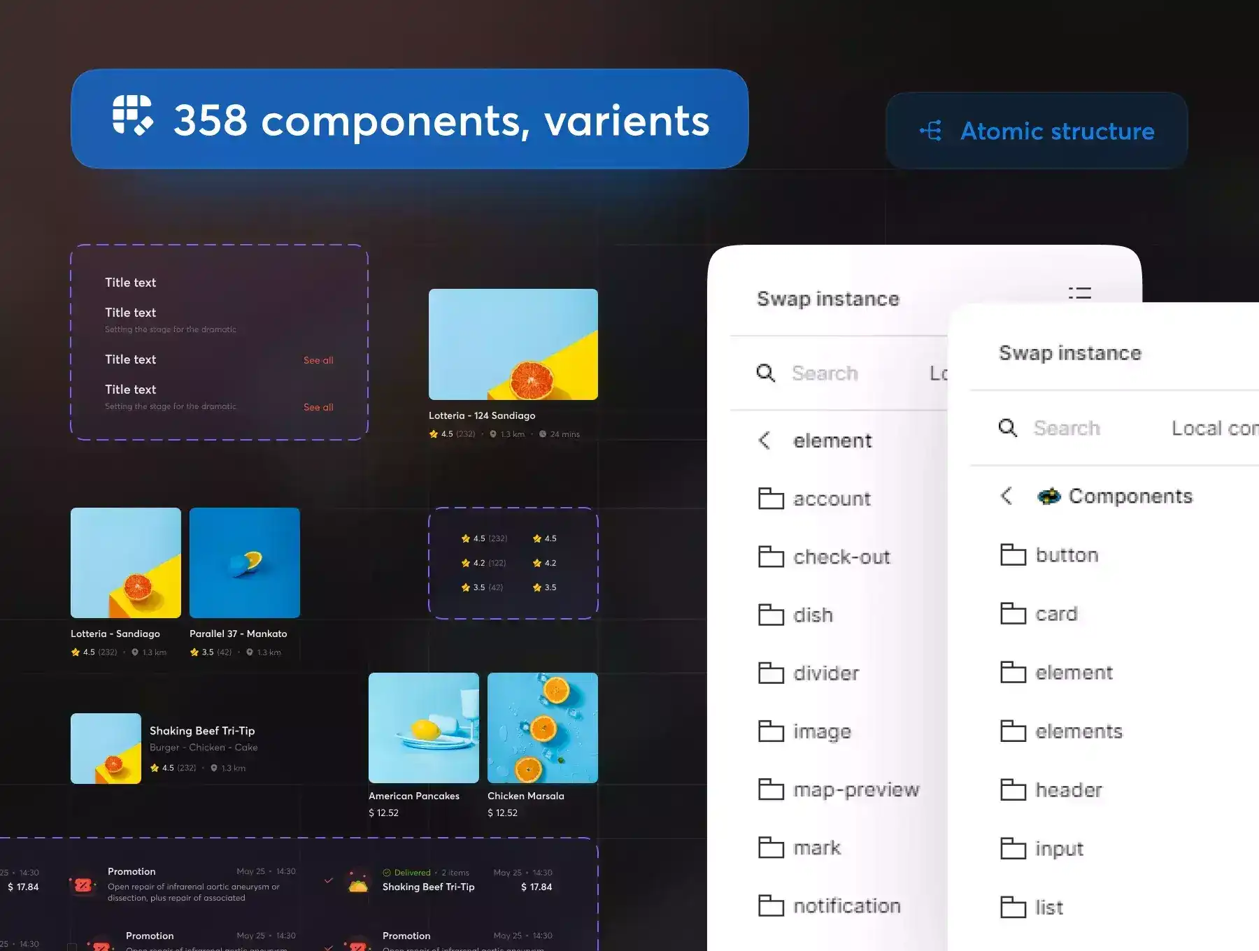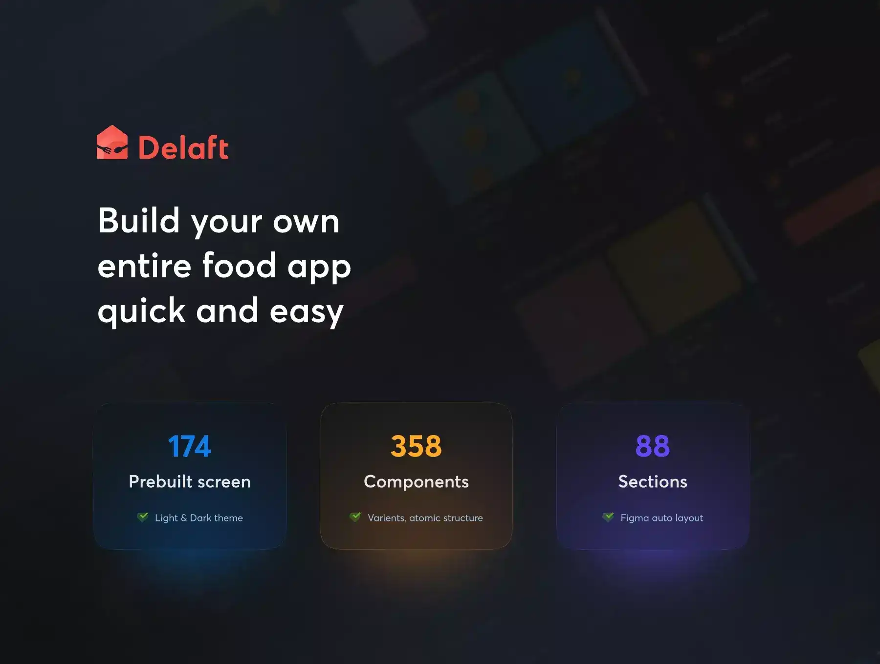 This package includes a dark mode & light mode with 174 clean & minimal pre-made screens. We've added a lot of different content to maximize the number of layout options. Drag, drop and mix different parts to quickly build your own Food Ordering in a matter of minutes.