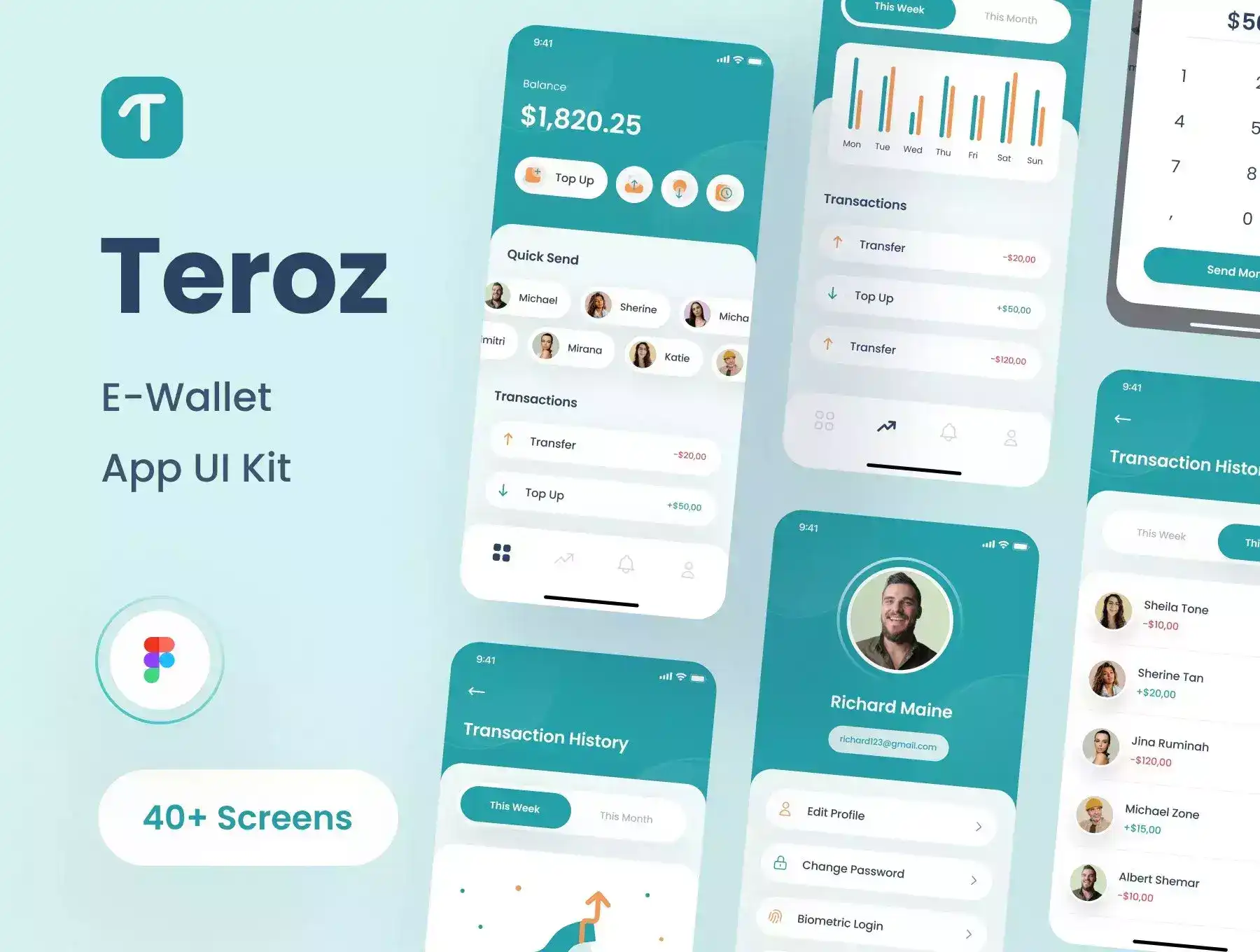 Teroz is an E-Wallet App UI Kit with a clean and sleek style that contains 50 high-quality screens + iOS Widget UI and responsive resize features for iOS with iPhone X screen size (375px X 812px) ready to use and ready to kickstart your design process.