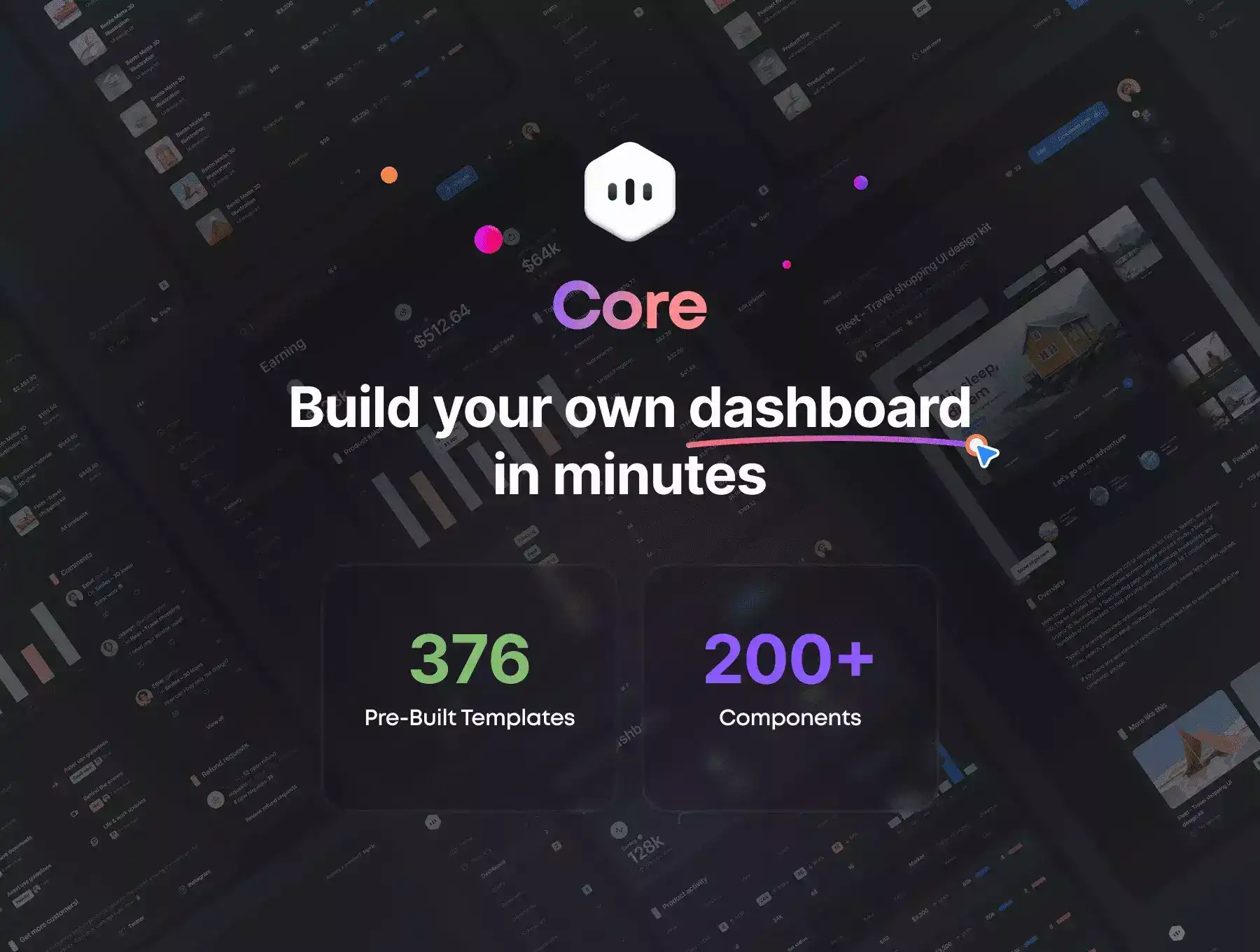Core helps designers ideate dashboard projects faster and easier with 200+ components. This package includes responsive and fully customized templates with 376 clean & minimal pre-made screens. We've added a lot of different content to maximize the number of layout options. Drag, drop and mix different parts to quickly build your own Dashboard in a matter of minutes.