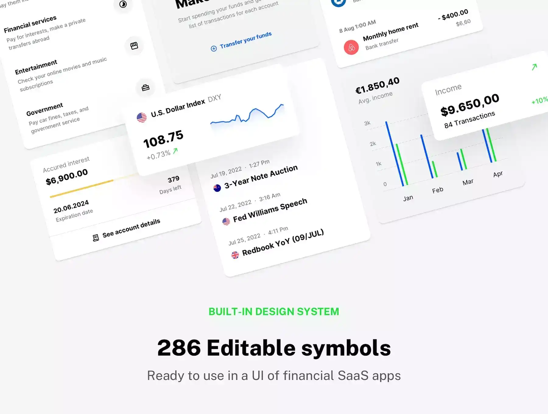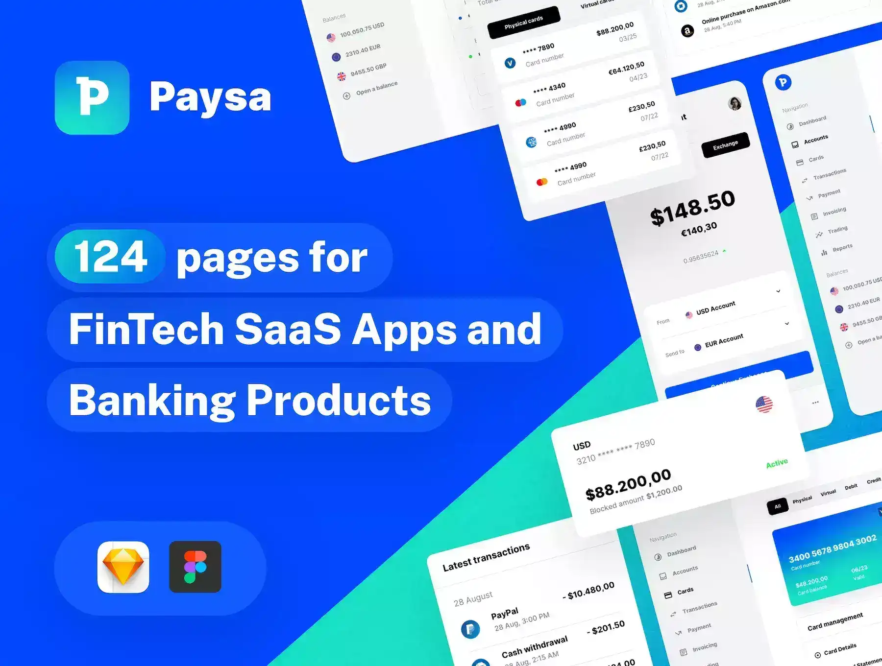 Our UI kit is compatible with Sketch and Figma apps. Use a tool of your choice to design a UI faster with our Design System which includes symbols, layers, and font styles. Paysa UI template is a perfect start for financial SaaS apps' user interface design.