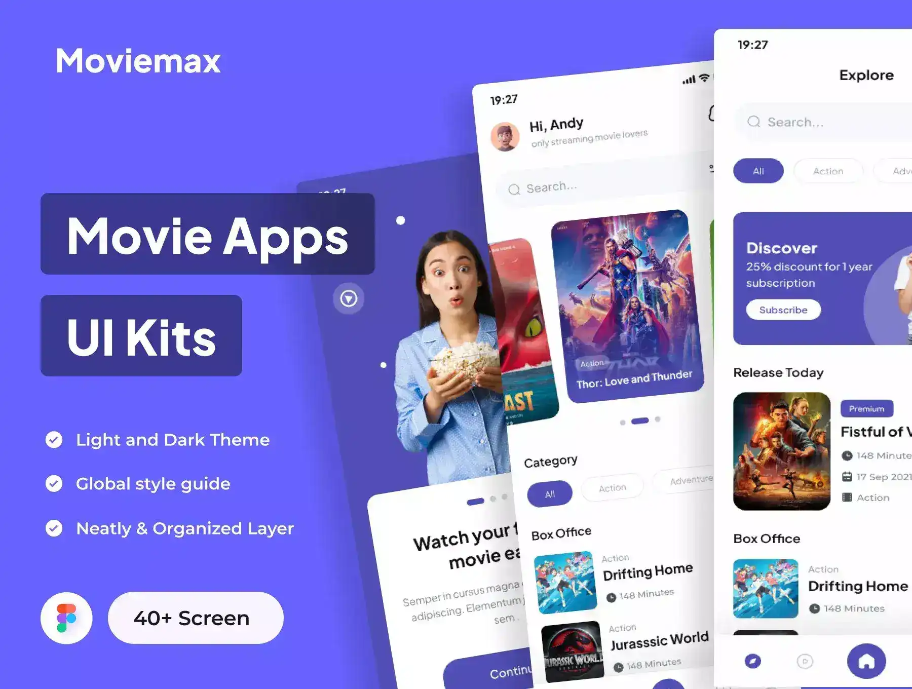 Moviemax a Minimaslist design UI Kits for Movie App with 40+ screens.