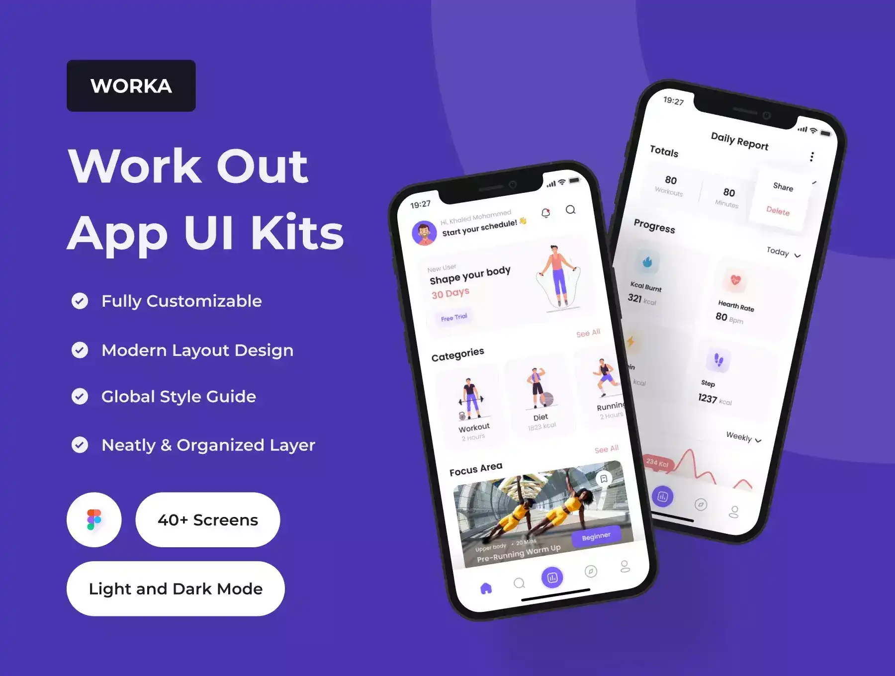 Worka has more than 40+ high quality pack designed screens for daily fitness and health tracking app. Which is great because it streamlines the process of locating the most suitable fitness/workout lesson on your app. All of the components and screens are fully responsive, allowing you to easily adjust them to the size of your screen, and they are also well documented.