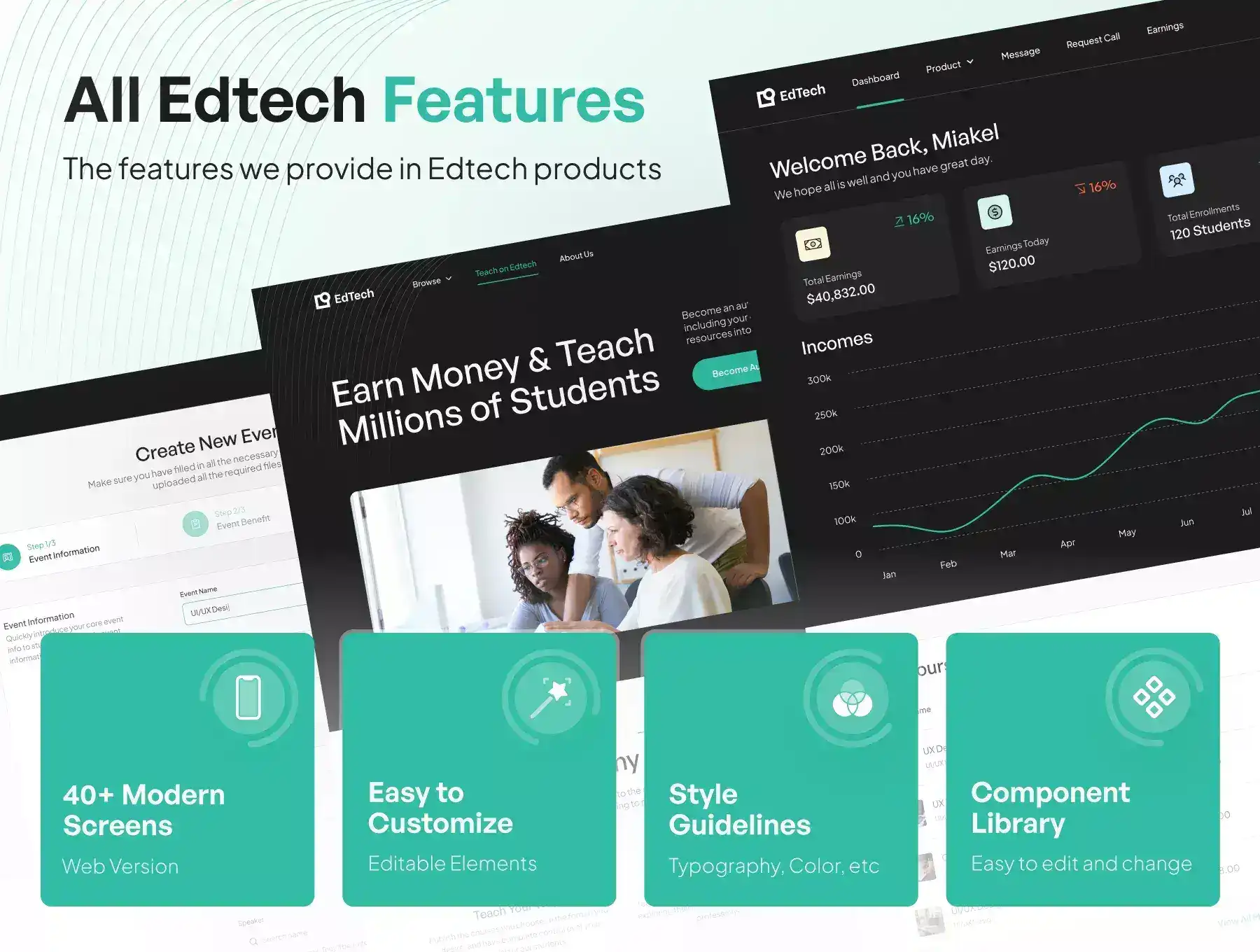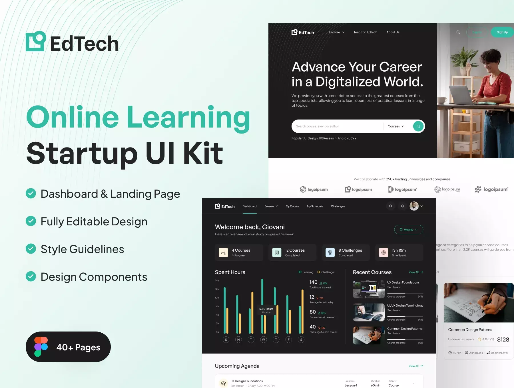 EdTech Online Learning Startup UI Kit will help your online courses App products or services. Came with clean and professional style, you can easily edit and customize all elements with a design component that can speed up your design process.