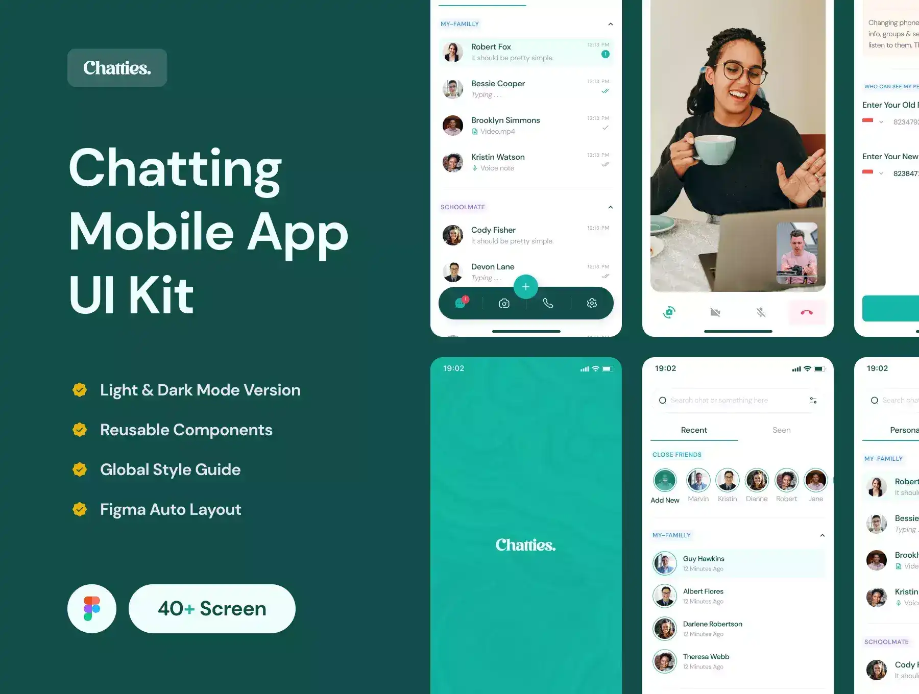 This is our new UI Kit product called Chatties. It’s a mobile app for the Chatting platform. The concept is easy to edit, customize, and resize, because of vector shapes, and very well-organized layers.