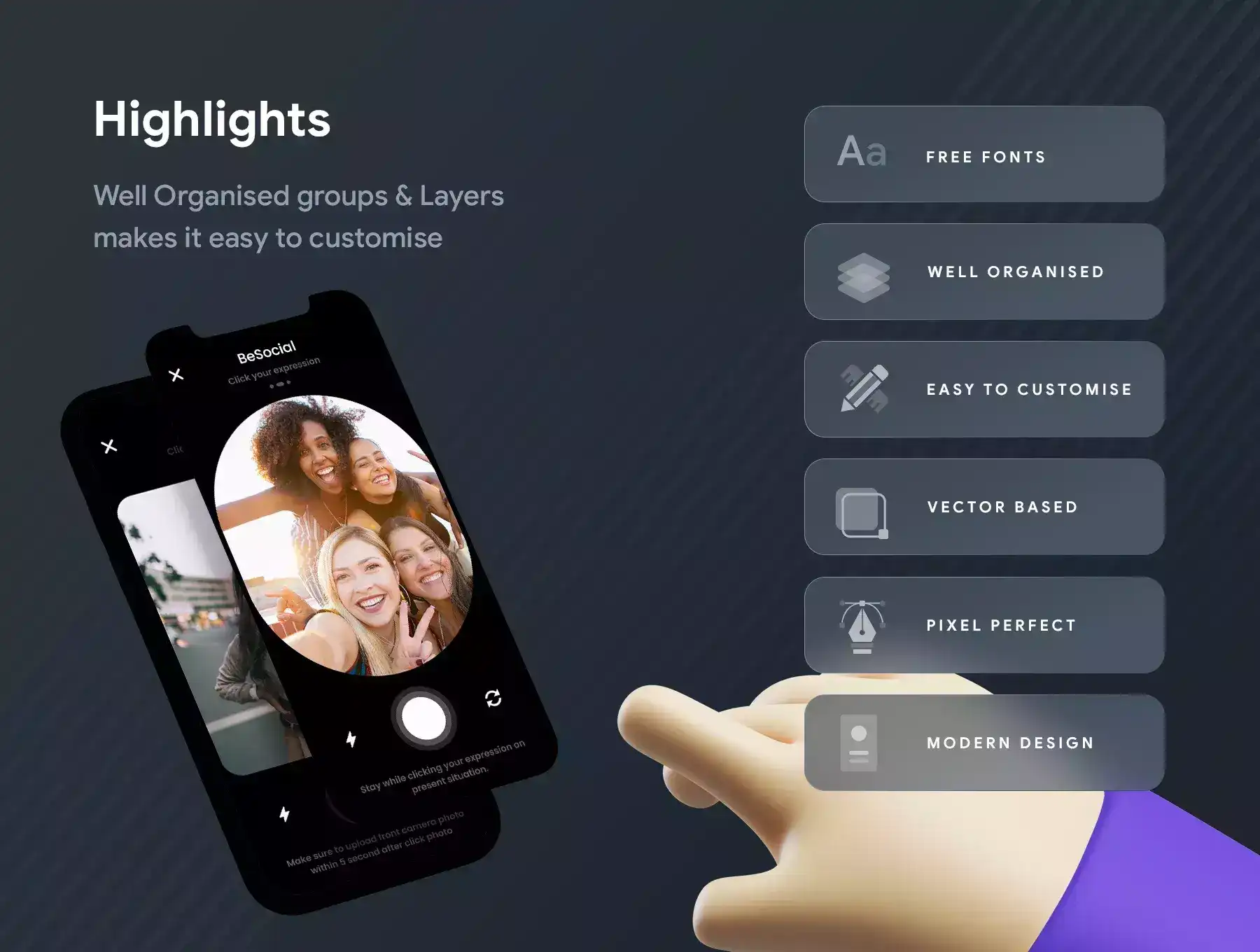 BeSocial is the similar app like BeReal app which is simplest photo sharing app to share your real life in photo with friends. Every day at a different time, everyone captures a photo. A trendy flat material ui kit is designed by our top experts. We have created an awesome dating app for android and iOS ui users.