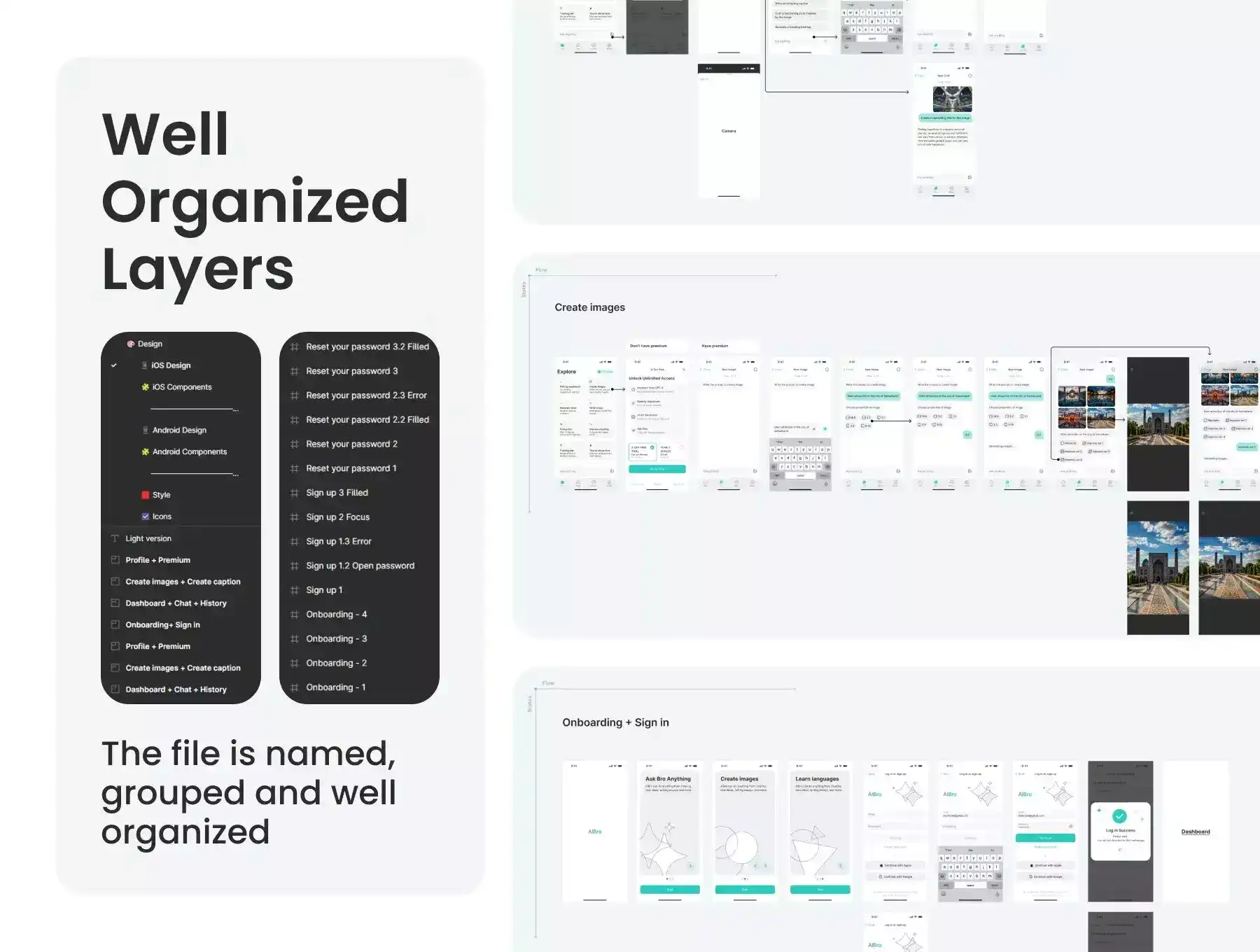 - Onboarding, Sign up, Log in, Forgot Password, Success & Failure Dialog