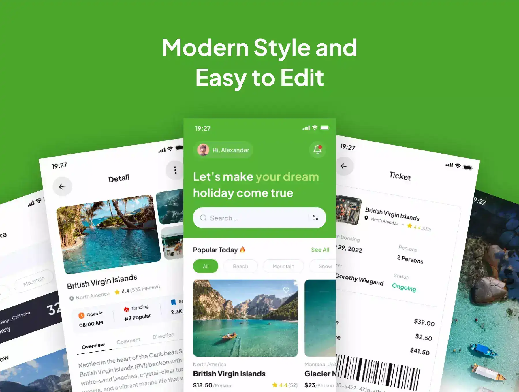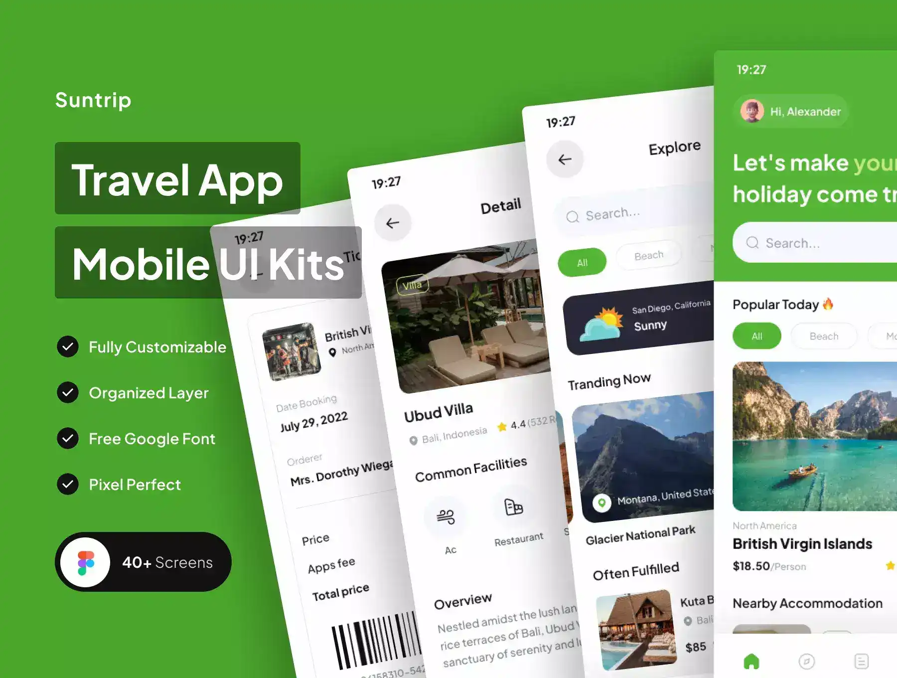 Suntrip is a Travel app mobile UI kit for your agency or your business