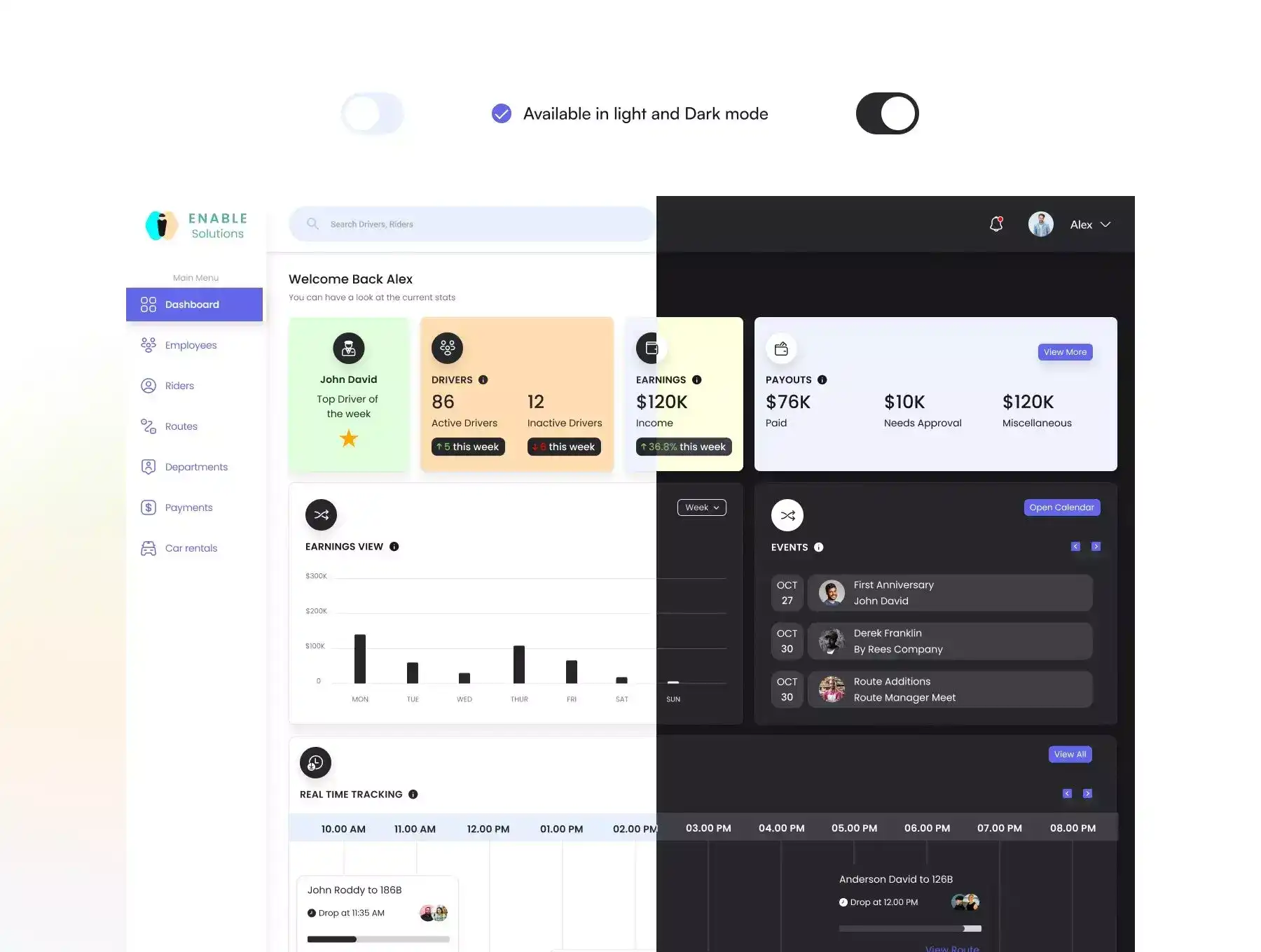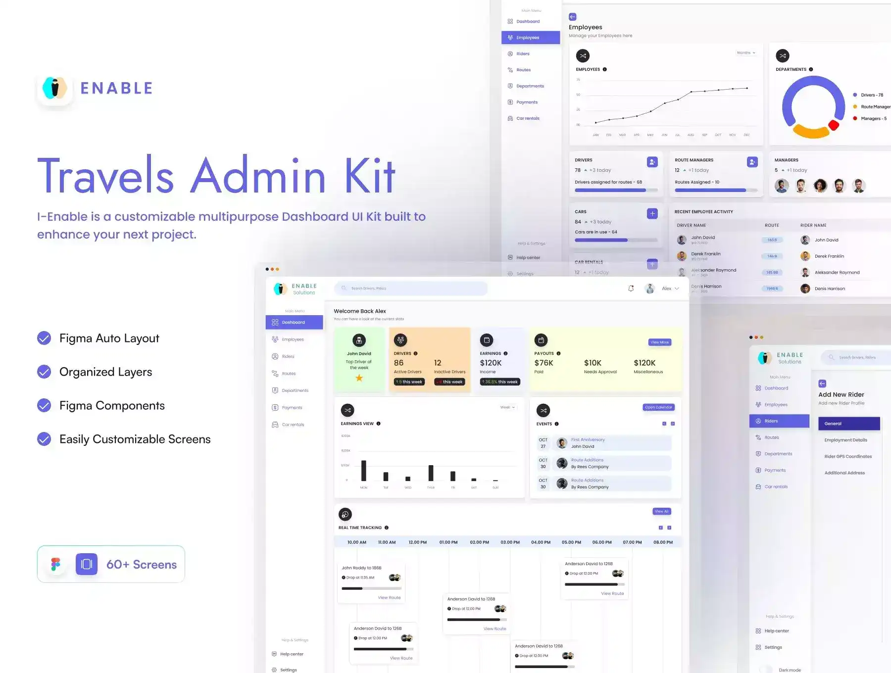 Kits comprise of Design for Admin portal, where Admin can see the details for what Revenue he generated, what Drivers and Riders are associated to his system.