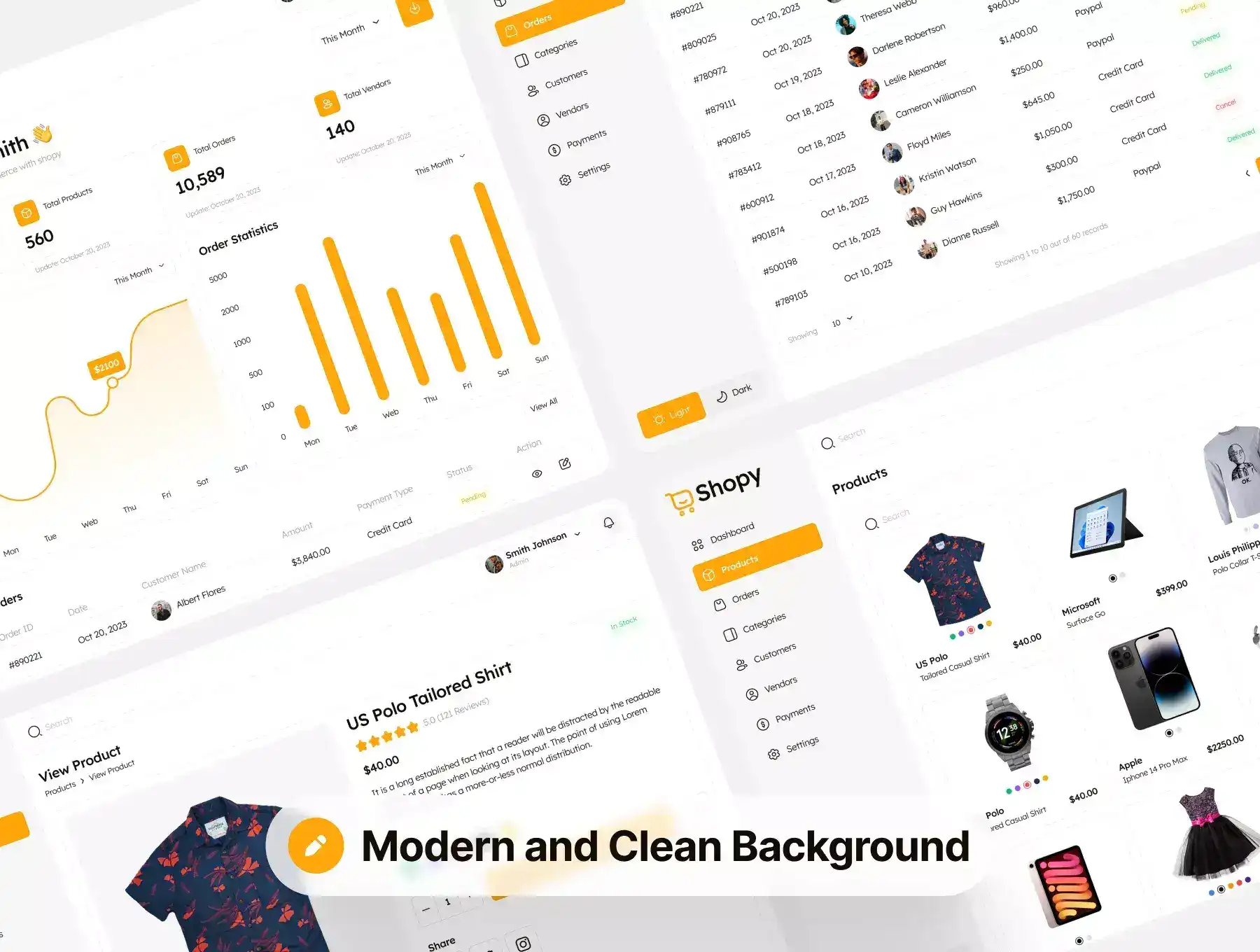 The UI kit provides a range of options with Light & Dark theme, ensuring flexibility to meet your specific requirements. Each screen is designed with a clean, modern aesthetic, resulting in a visually stunning admin that will captivate your audience.