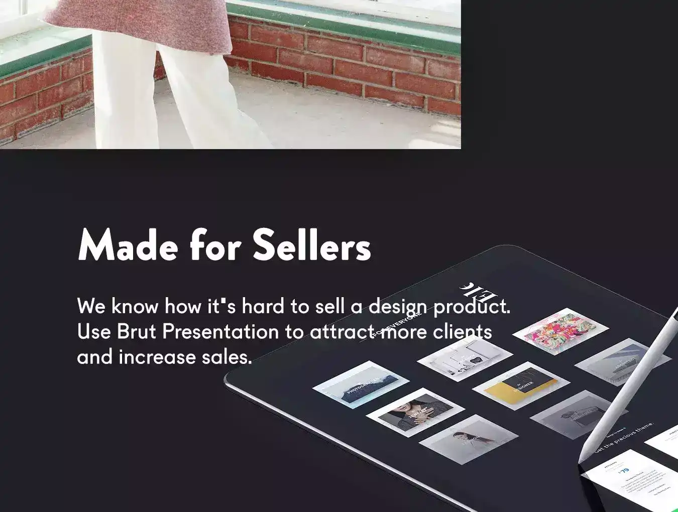 The Brut Landing Page is perfect to show off a good theme, UI Kit or template for sale.