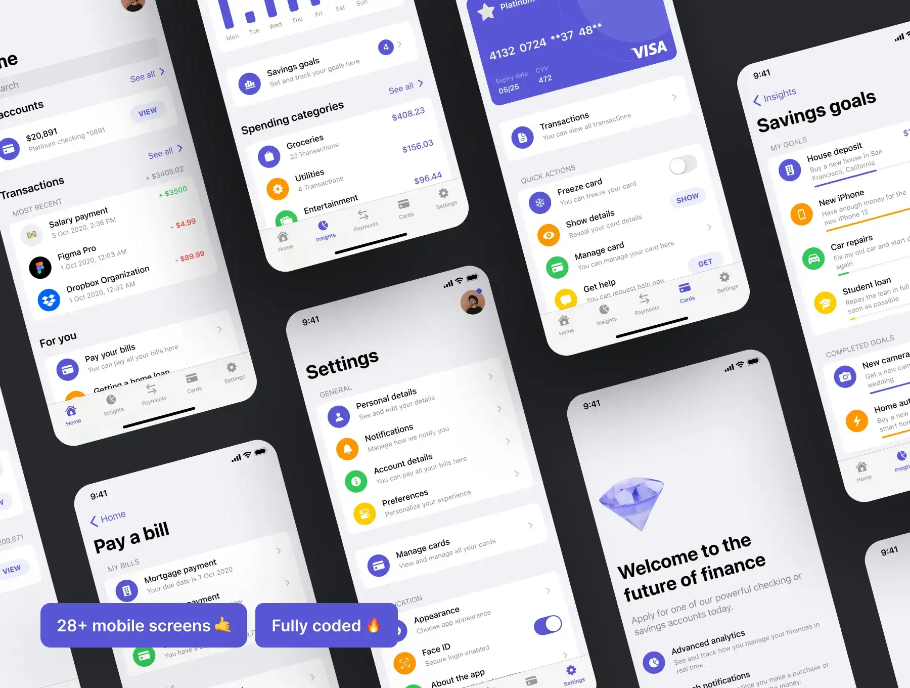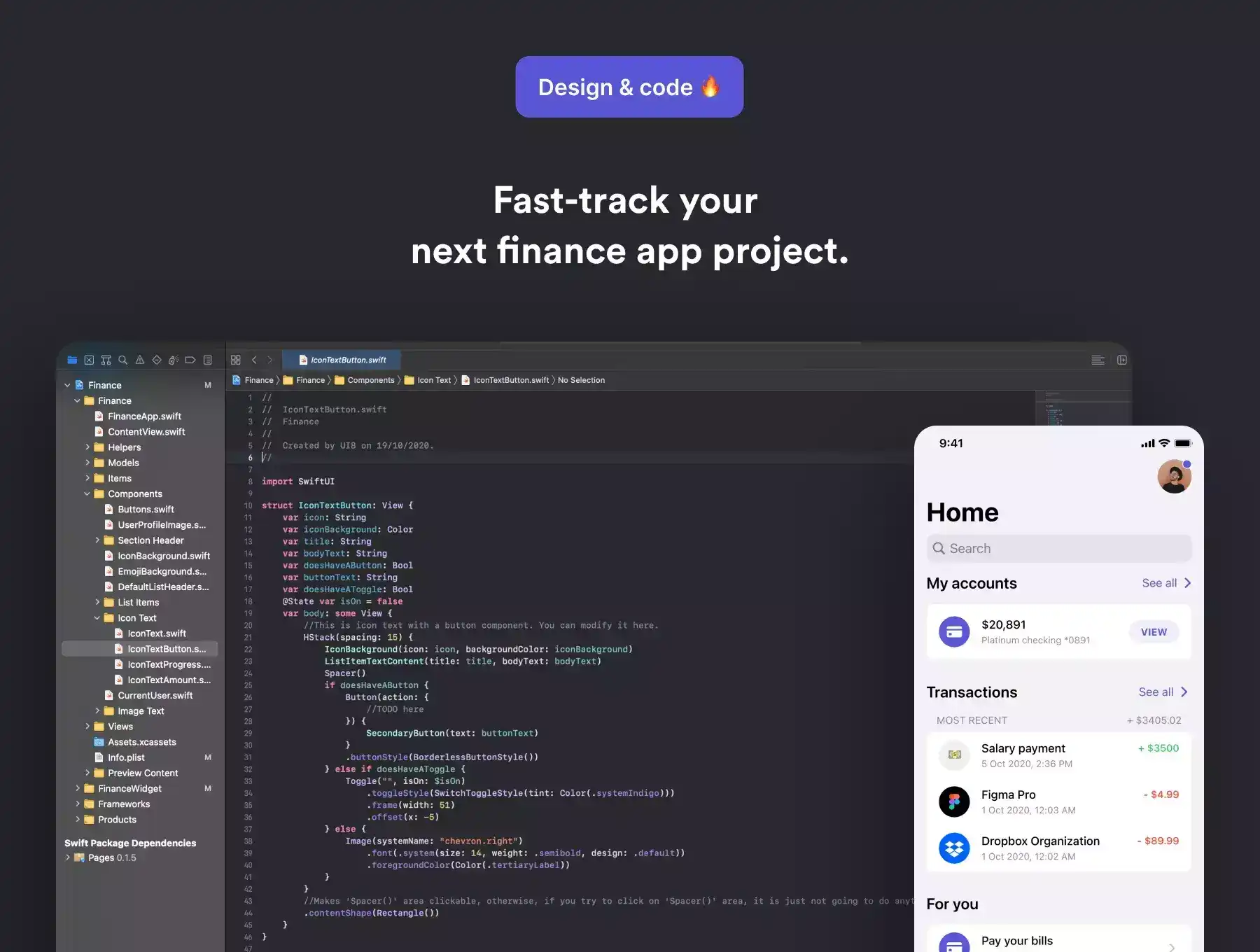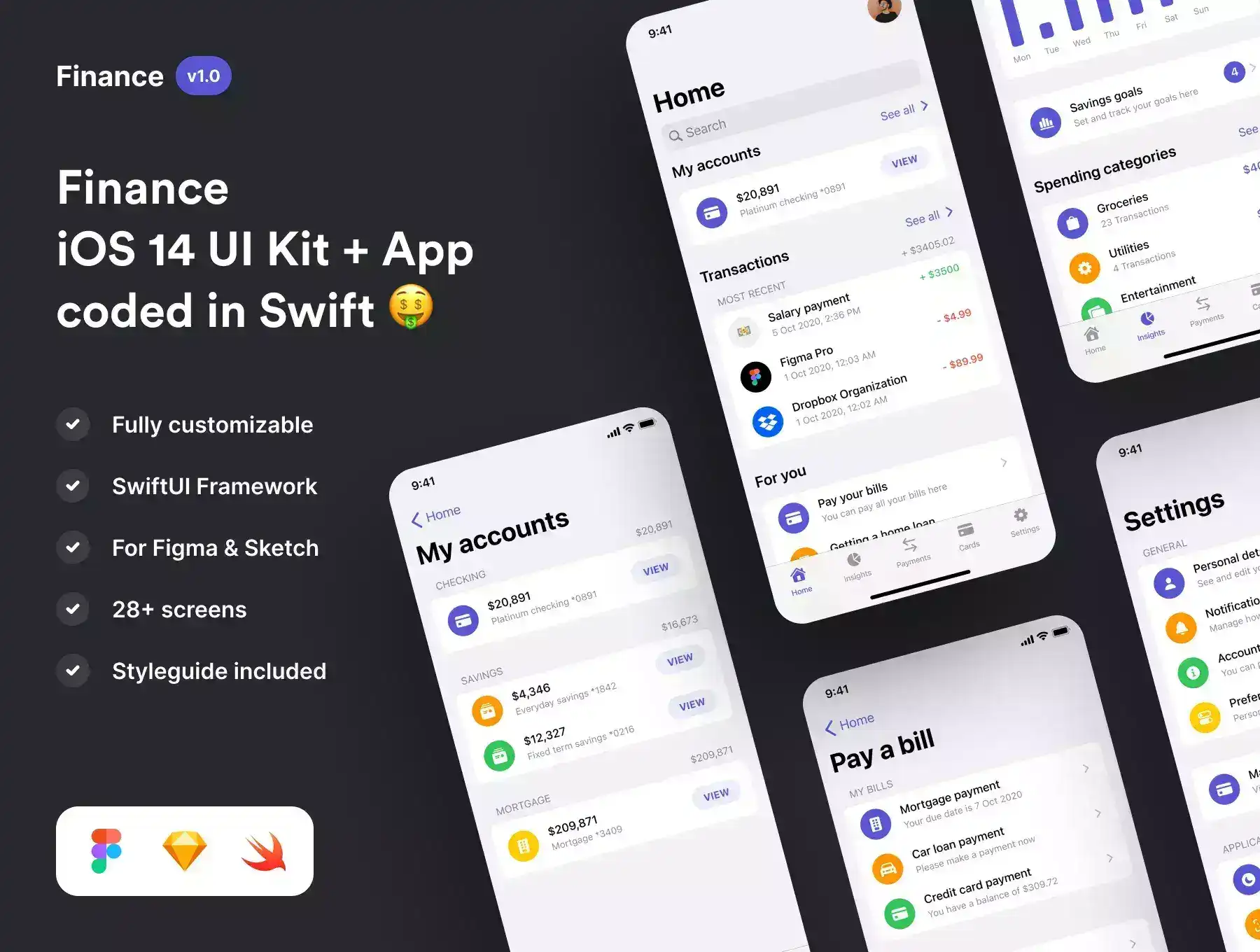 Swift Finance is a coded iOS app template with a clean and minimal user interface for your next financial related project. Switch codebase + Design files for Figma and Sketch included 📱