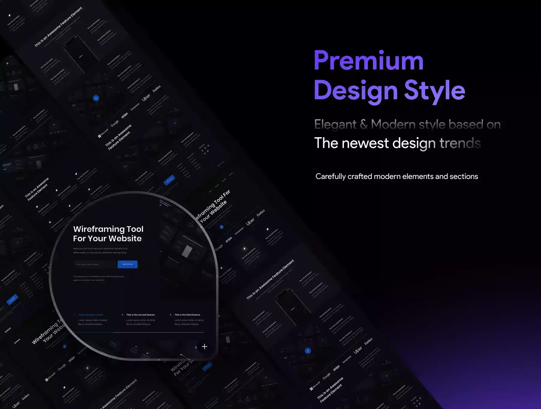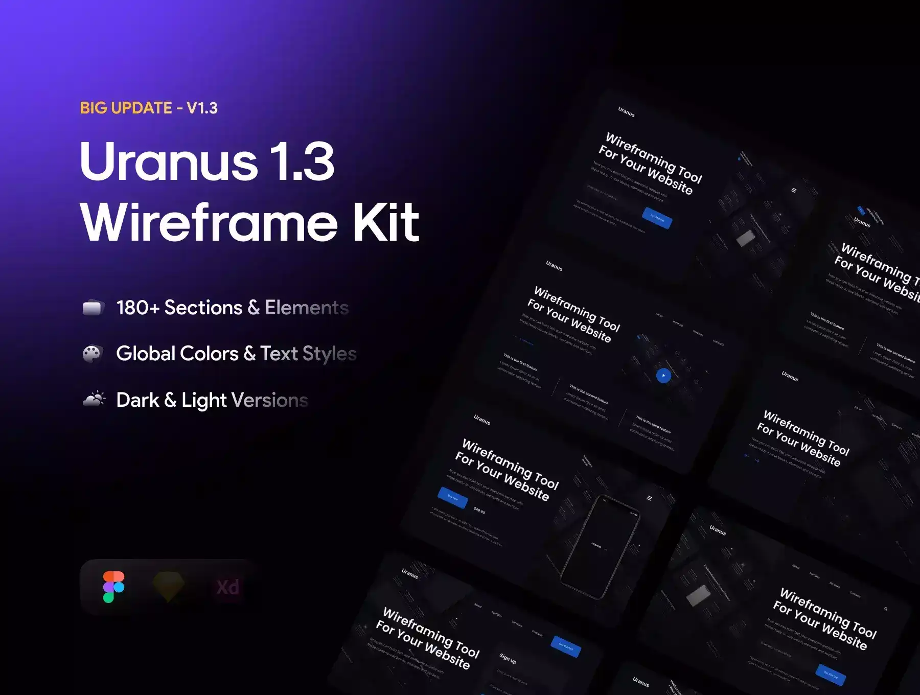 Uranus - Wireframe Kit is a wireframing pack with more than 180+ dark/light ready-to-use web elements/sections. The basement idea of this kit was started from the wireframing time problem.