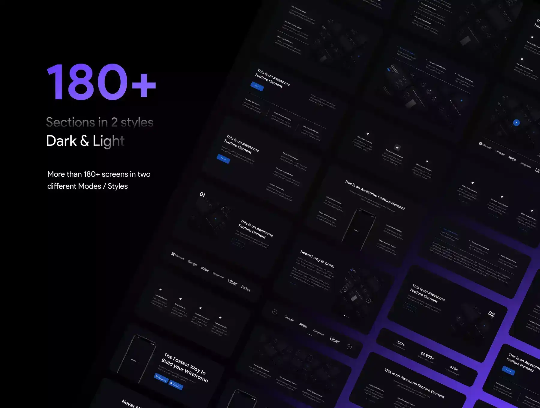 - 180+ Dark/Light ready-to-use sections & UI Elements