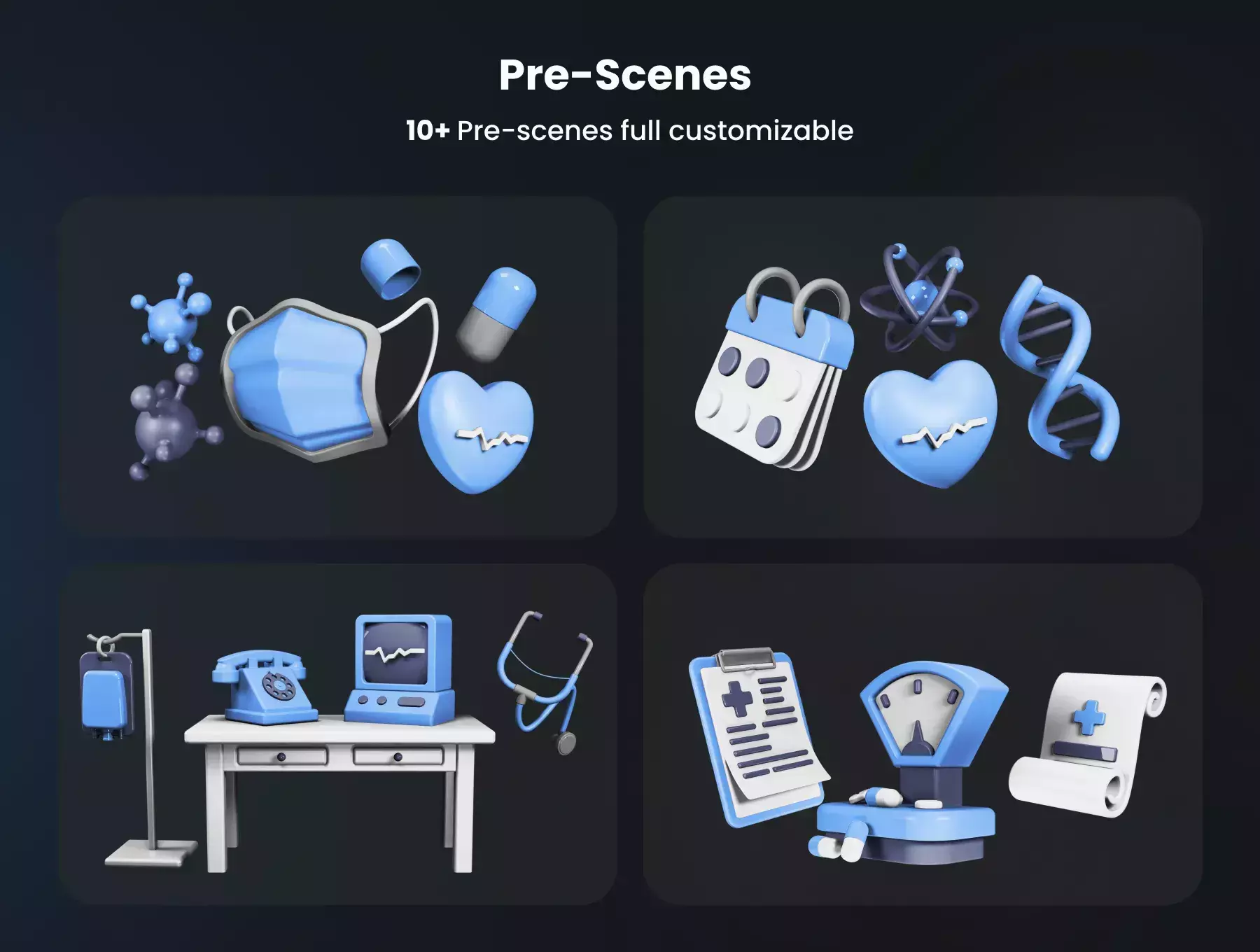 Healthcare 3D Icons is a pack of editable 3D icons thematics of Healthcare and Medicine, built-in Figma.