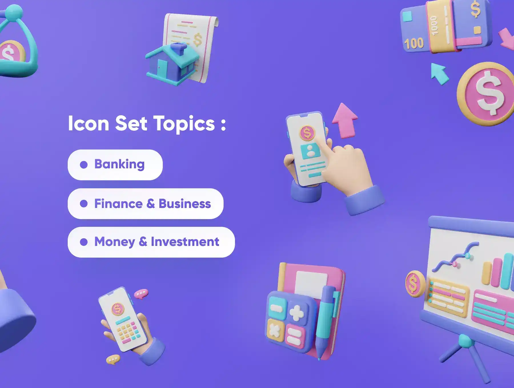 Banky is a pack of custom 3D icons suitable for any Bank and finance-related industry. Make your next product and project more stunning with 3D Icons.