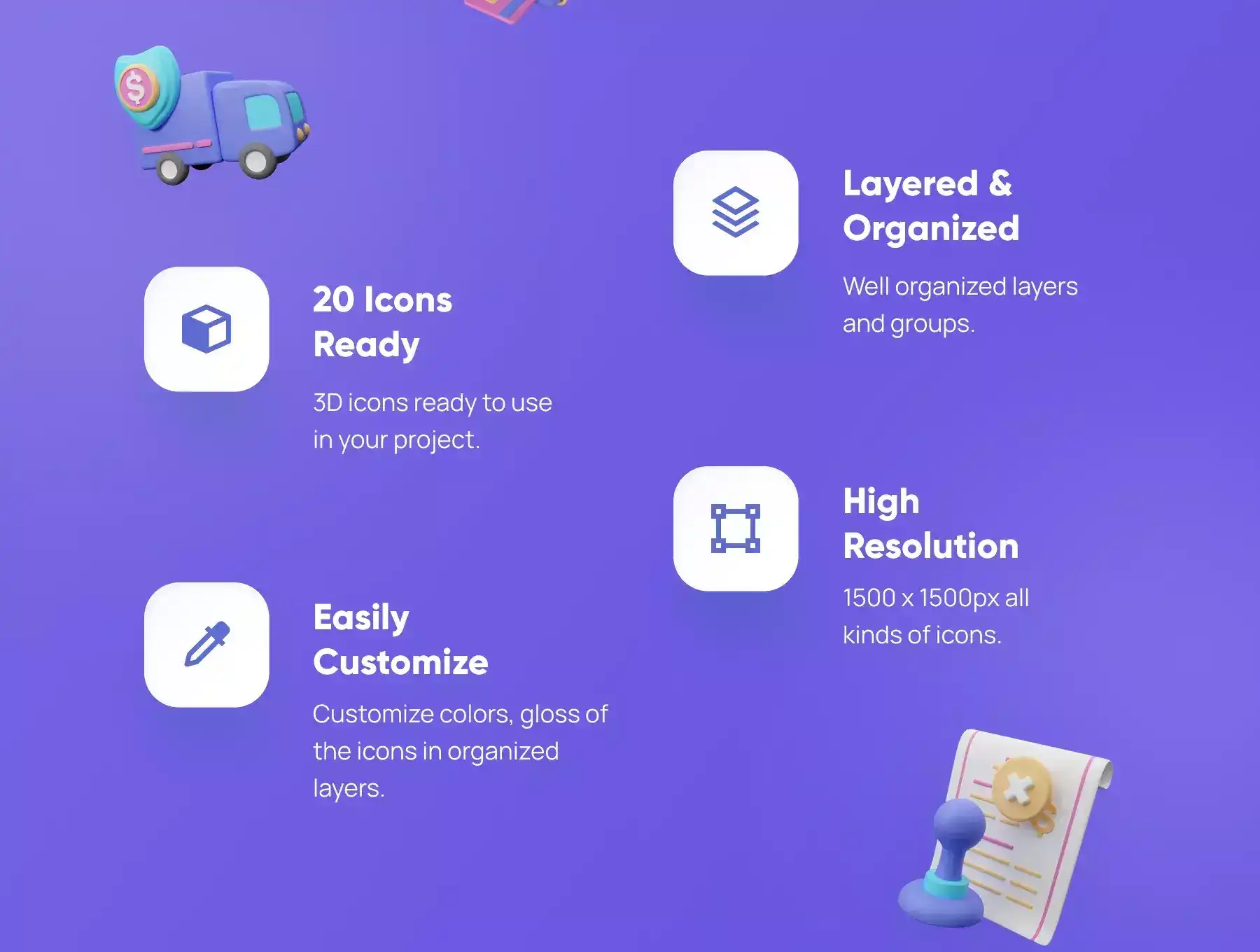 - 20 Premium Customizable 3D icons