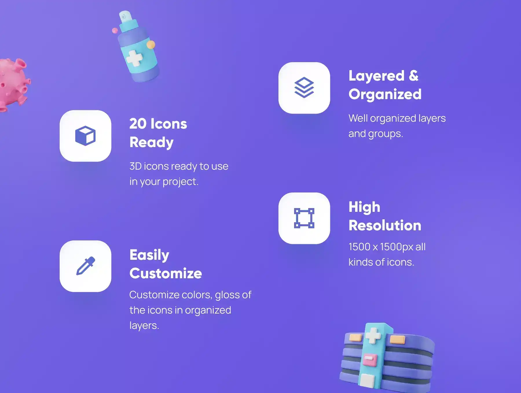 - 20 Premium Customizable 3D icons