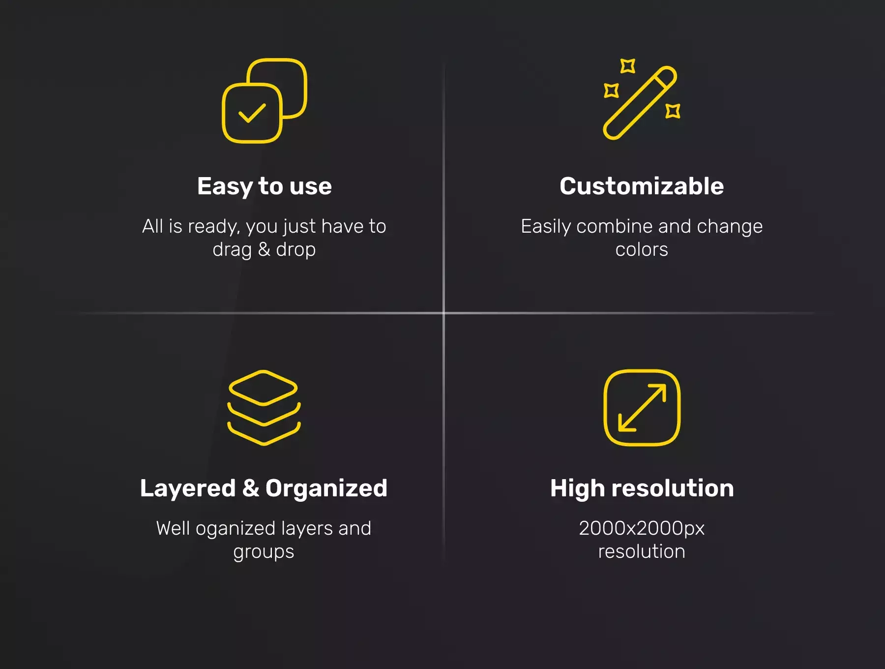 There are 35 icons in the pack. You can easily change the color according to your brand or tasks.