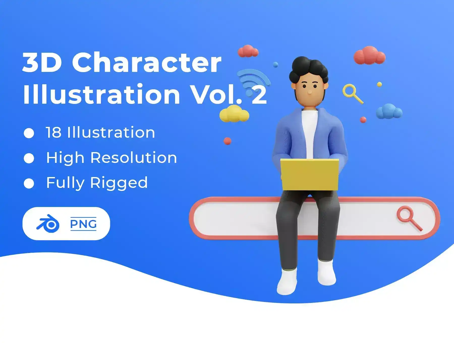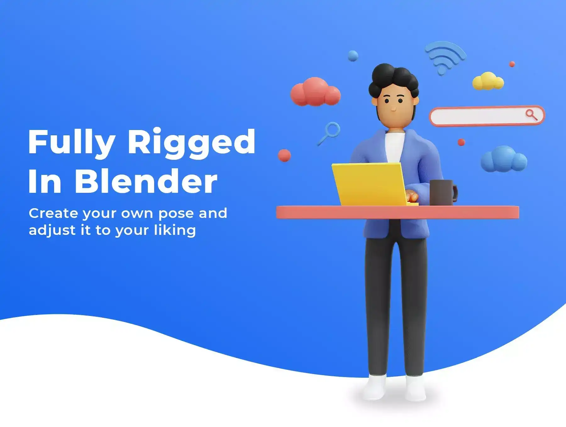 3D Character illustration packs are made for various purposes such as your presentations, posts, apps and websites to be attractive. You will get 18 high quality character illustrations (3000x3000 PNG) as well as a blender file. You can change the character's pose and color at will.