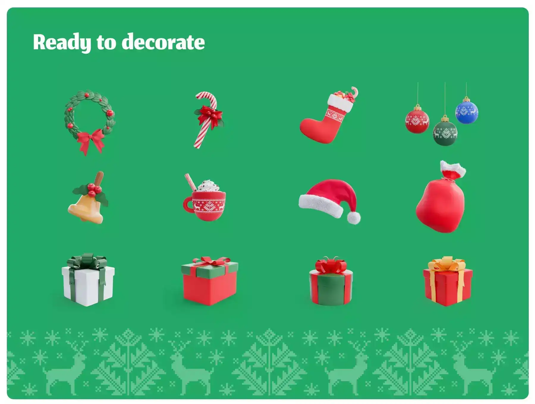 Christmas Cheer is a library of lively Christmas themed 3D renders for your design mockups and commercial use.