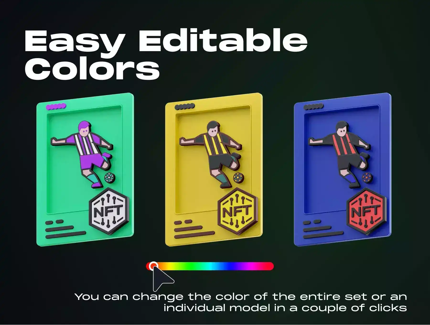Commercially is a pack of custom 3D icons suitable for any products. This pack will perfectly complement the design of your app, presentation, website, etc. The kit includes cards such as: NFT, Play to Earn, Sport Car, Crypto Investment, Gem and more . Create stunning, unique projects with these hand crafted icons, easily editable in Figma, and fully customizable in Blender.