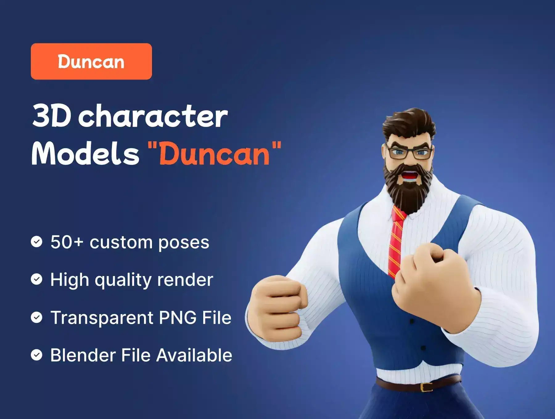 Duncan 3D is a supremely designed 3D Character Models. The unlimited Humans 3D Characters collection is ideal for businesses, startups, and professionals.