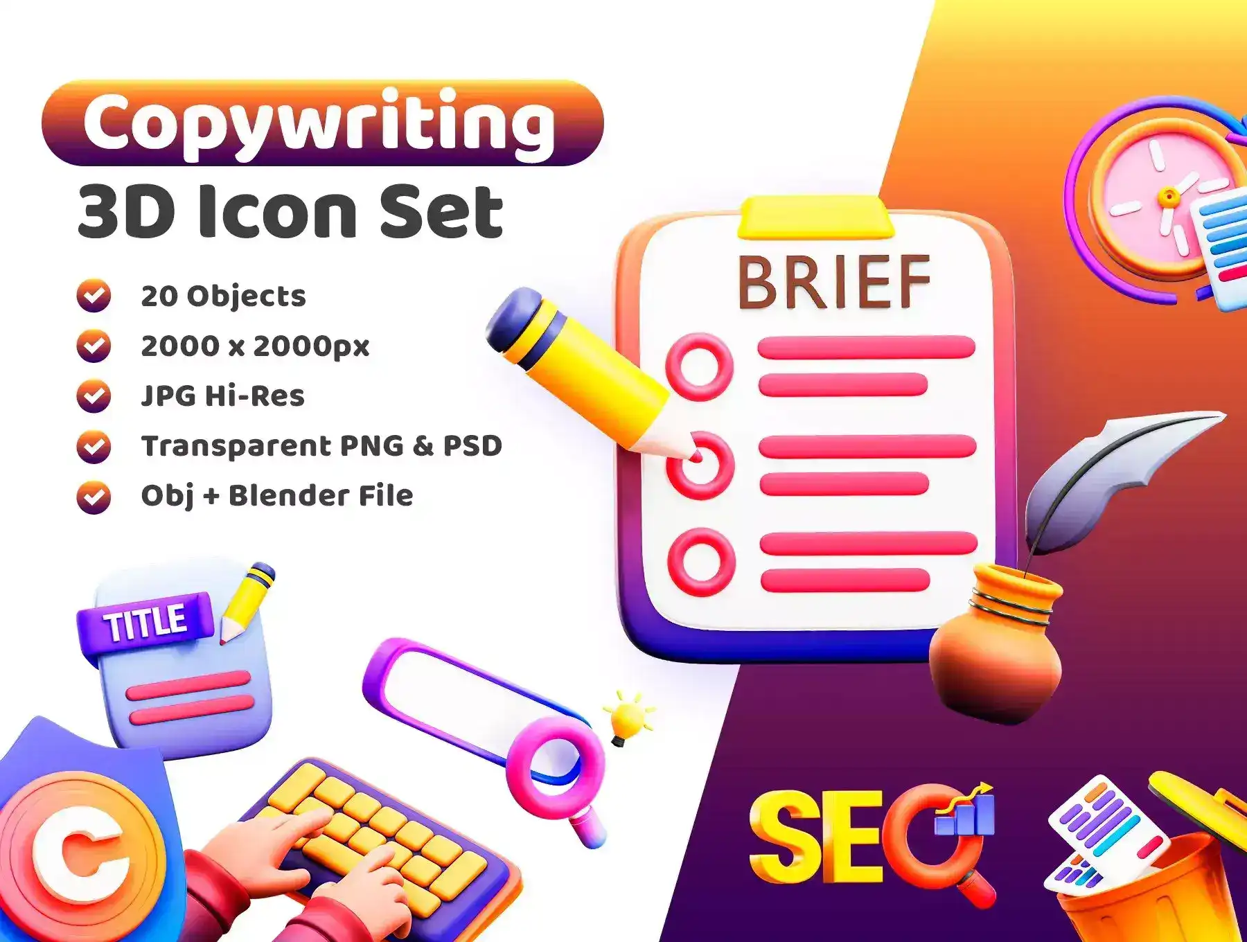🏆 This is a Copywriting pack of 3d Icon for design need, animation, apps, Ui Design, web design, Presentation, flyer or poster, social media advertising, content creator, and other.