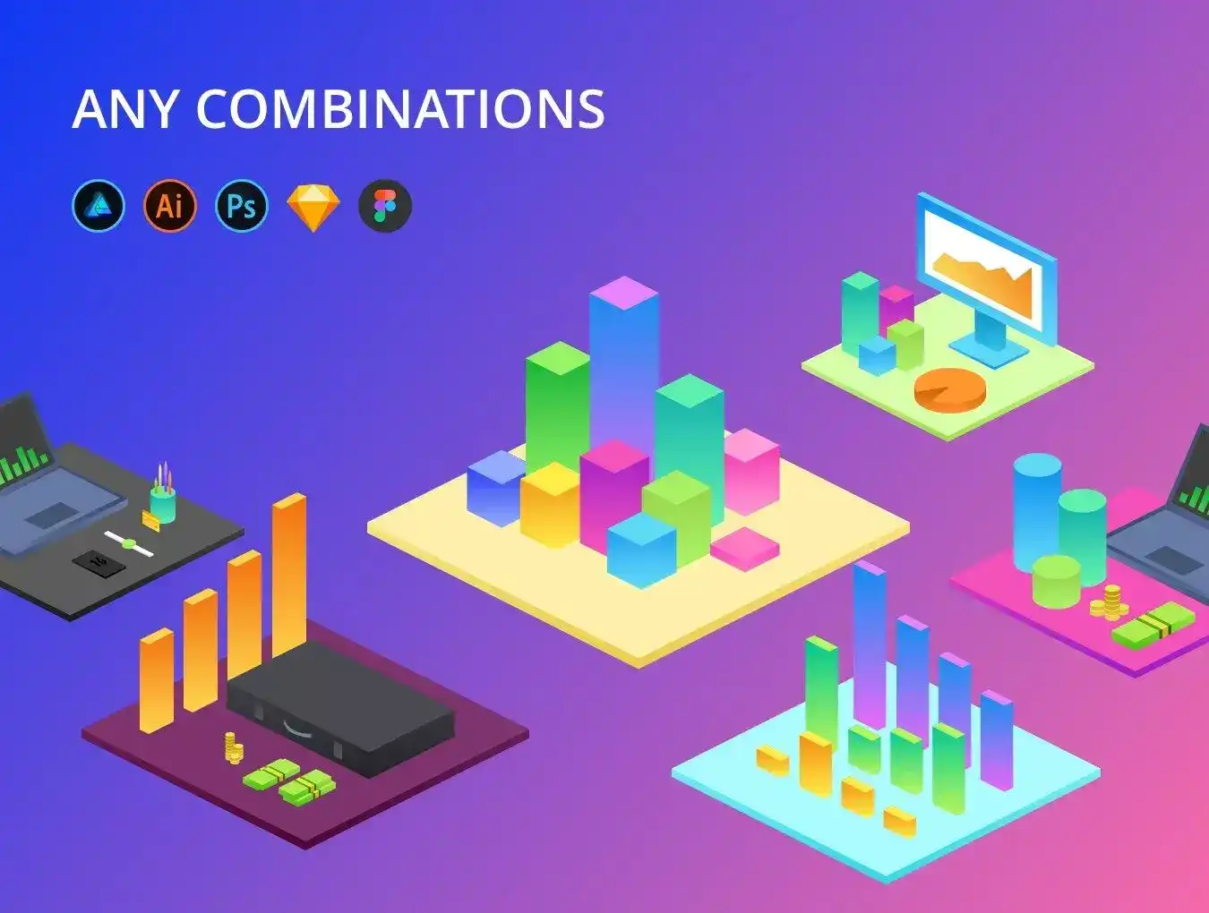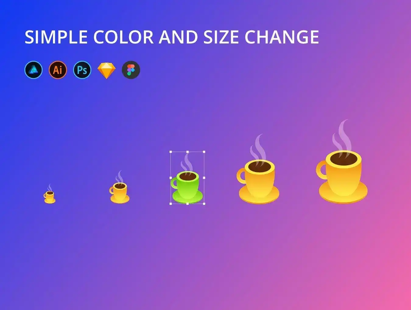 In the set there are more than 30 unique elements and a lot of color schemes. Objects are easy to change in shape and color. Support format: Adobe Photoshop, Adobe Illistrator, Sketch, Figma & Affinity Designer.