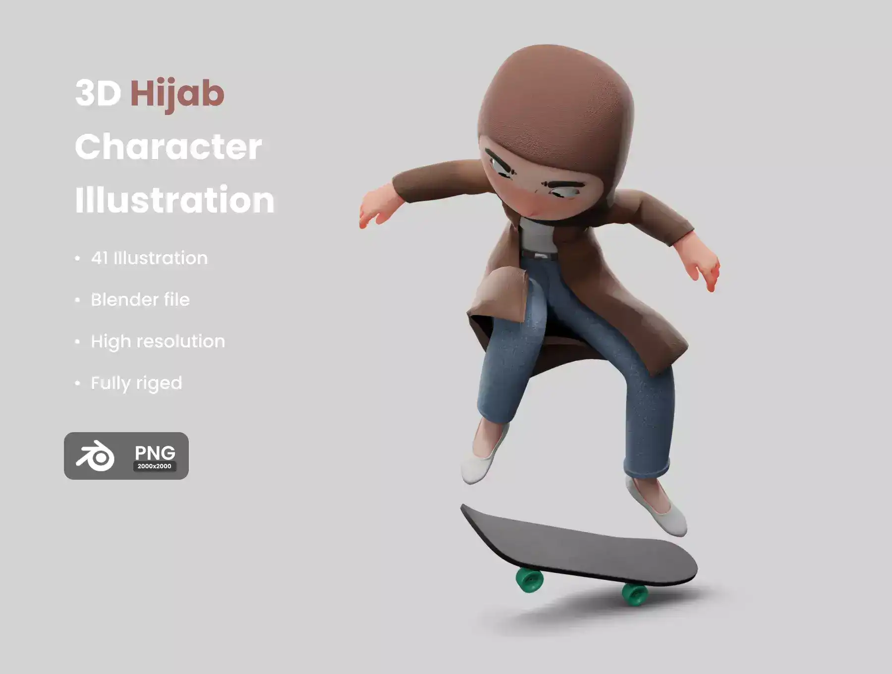 3D illustration of hijab girlsimple pose and easy to usesuits for Ramadan, Eid Mubarak, or any eventFree to contact me on IG for any question or business inquiry