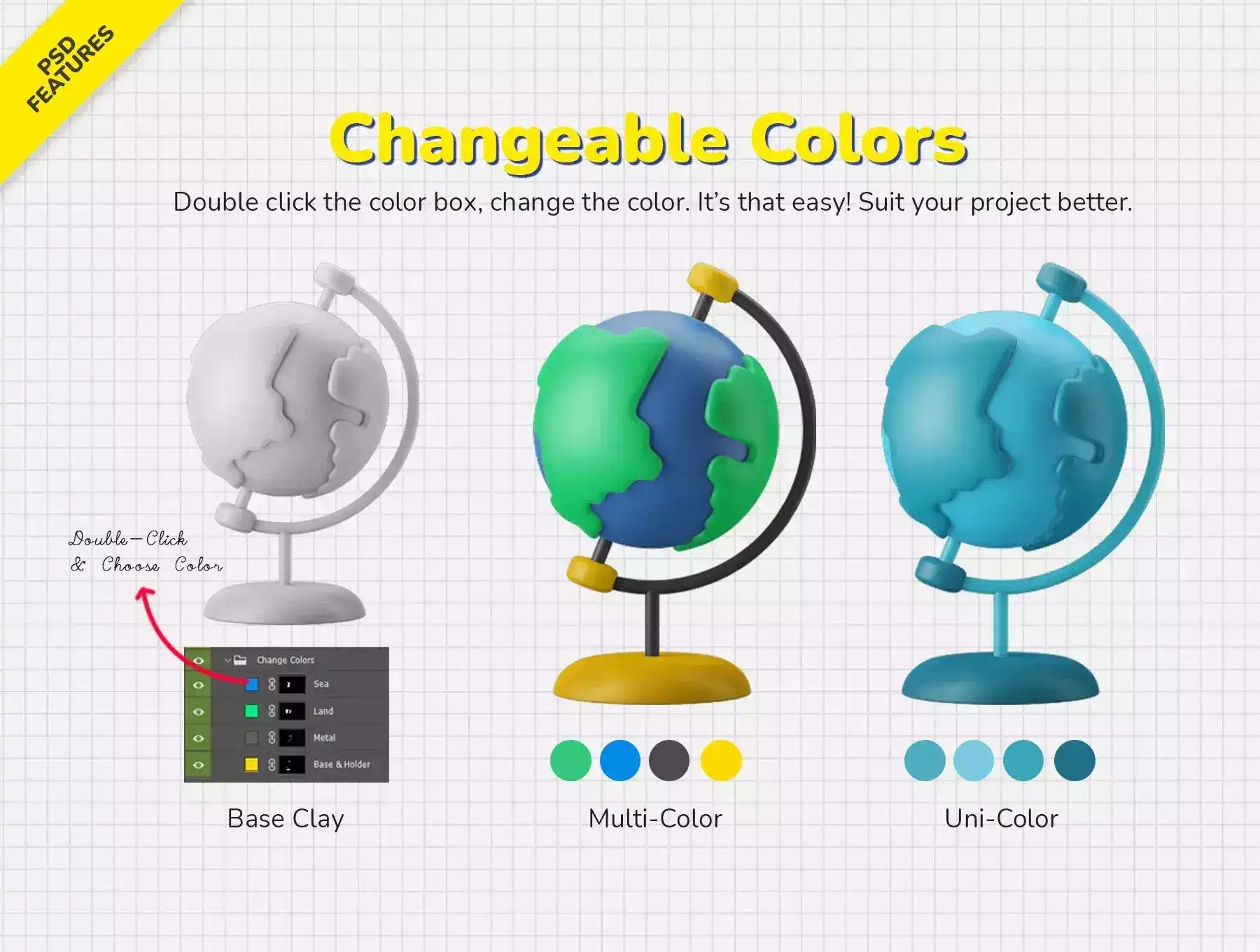 This icon set created to ensure you get full customization in your hand. With Photoshop PSD files, you can change the color and adjust its glossiness and shadows almost in realtime, without 3d software needed. And with 3D Blender files, you will get well modeled icon with built in lighting and material, it's ready to render. Also if you want it quick, just use transparent PNG, drag and drop to your project right away.