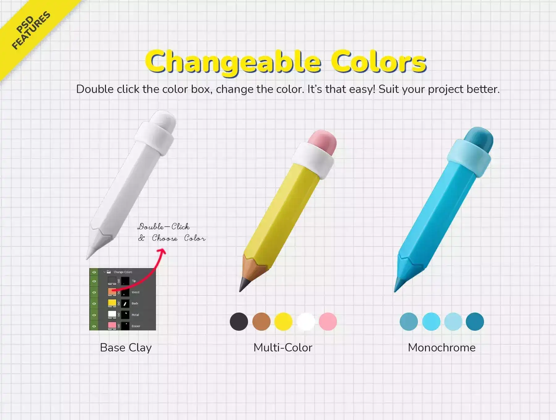 Full Customization, Change Colors and Editable Looks with Editable PSD & 3D Blender