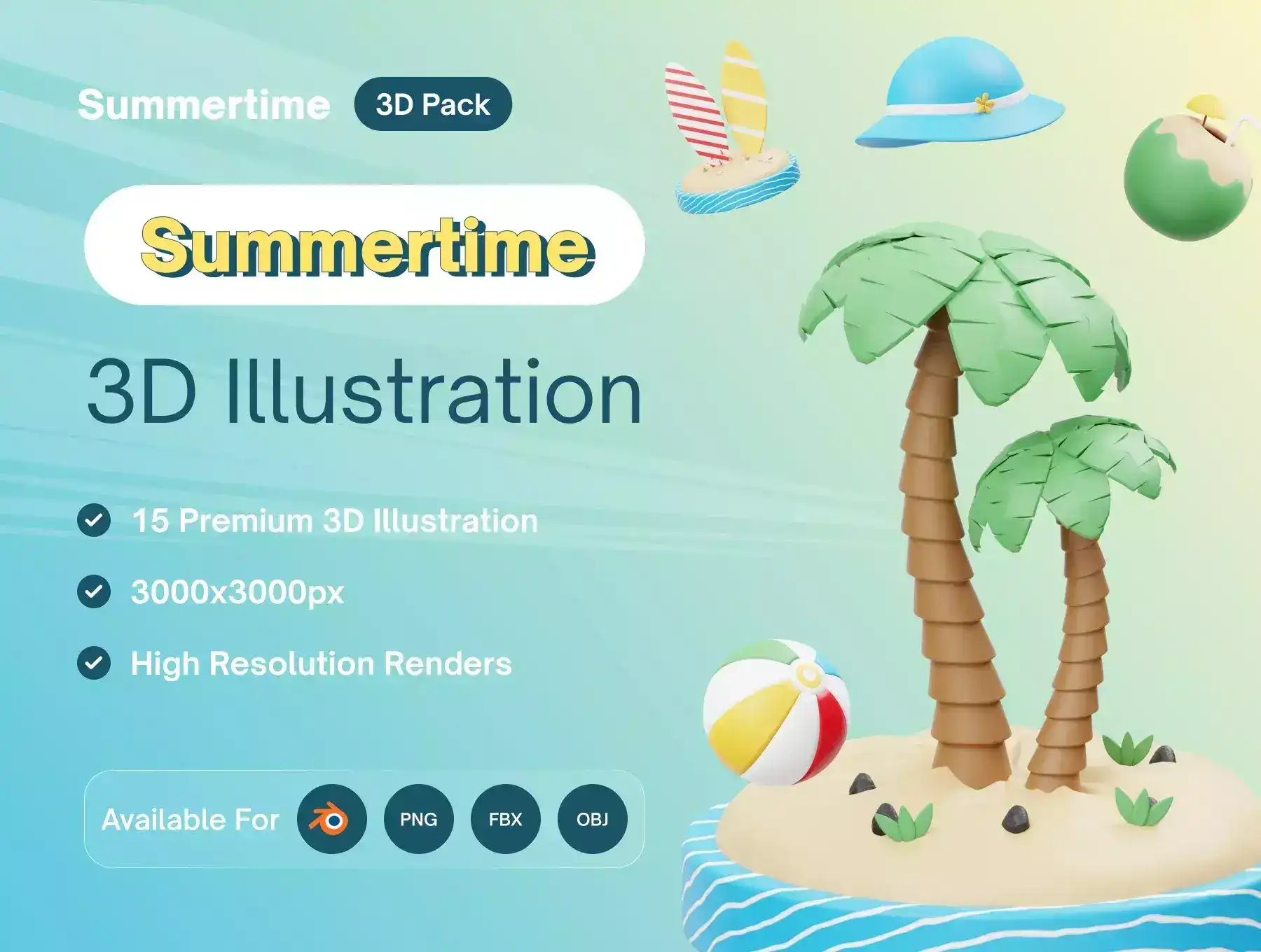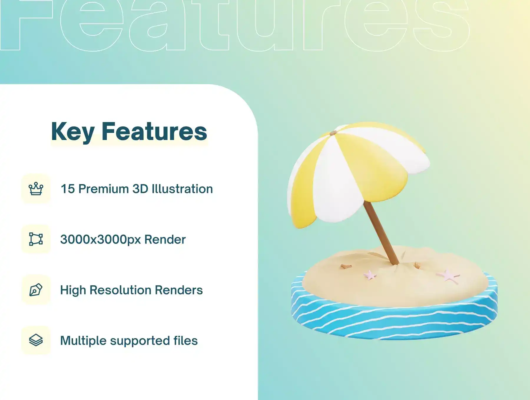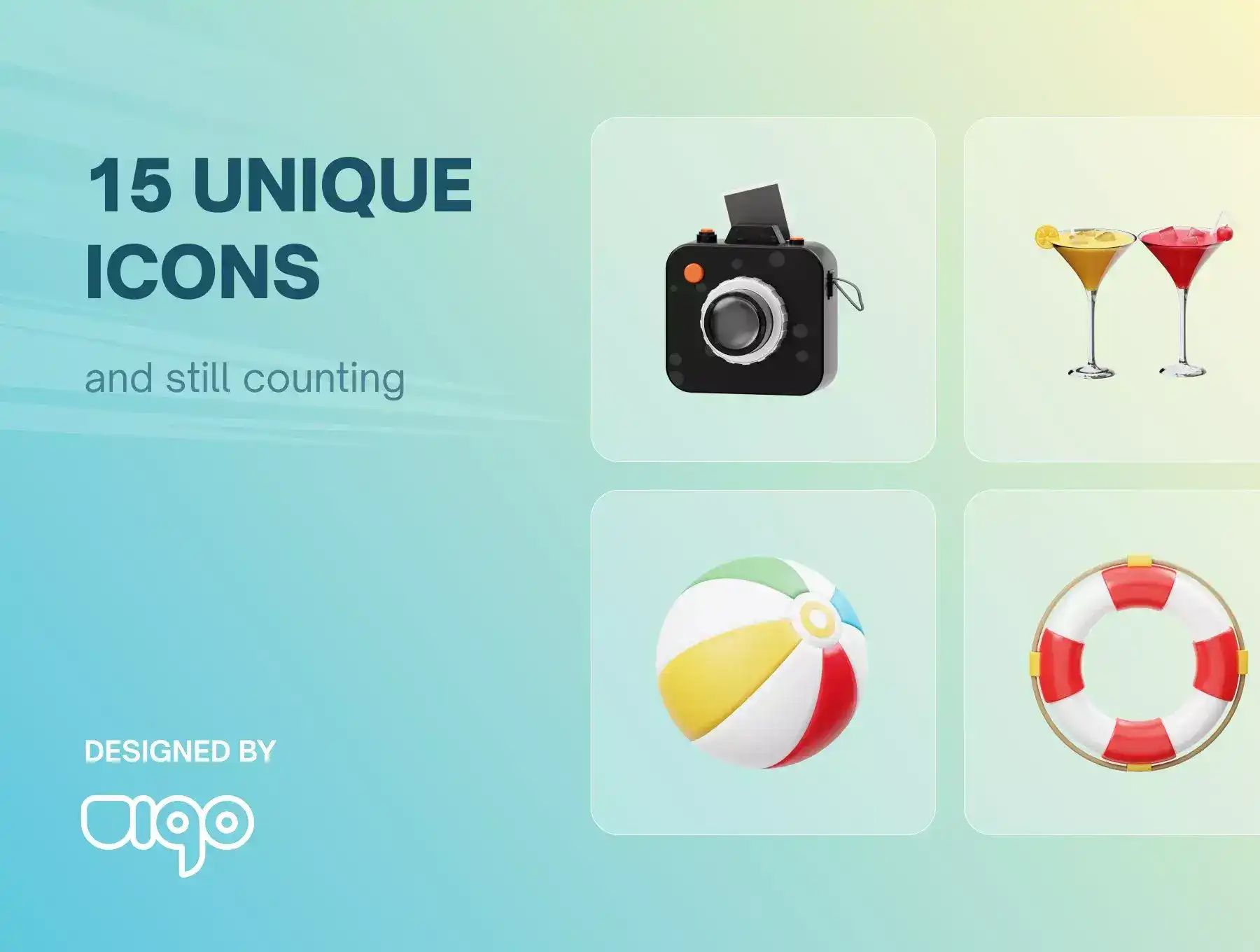 Playingsummertime is a special 3D icon pack suitable for promoting summer vacation services. Make your next products and projects even more stunning with 3D Icons.