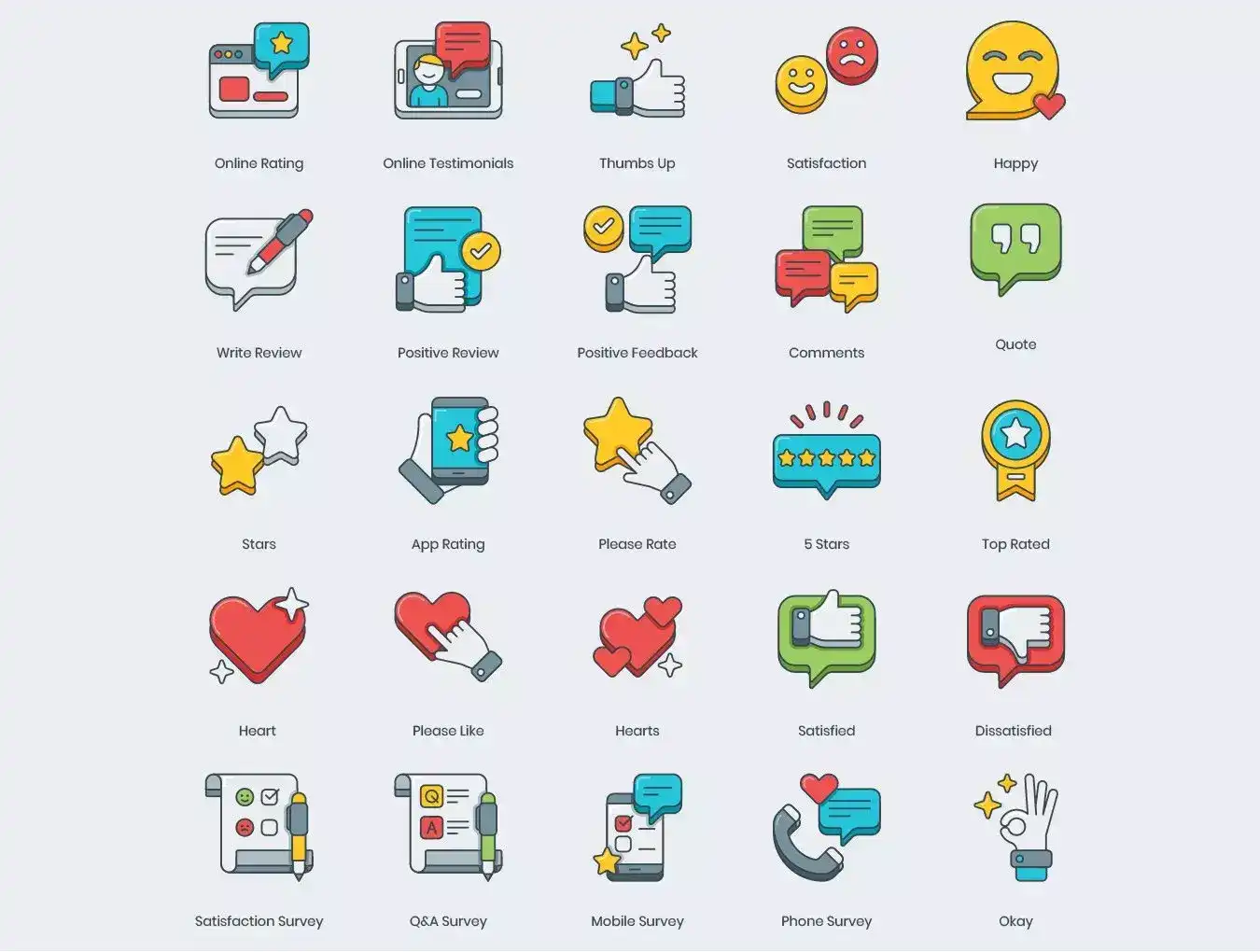 50 Incredibly handy customer service vector icons for customer satisfaction, customer feedback, customer rating and review, comments and testimonials.