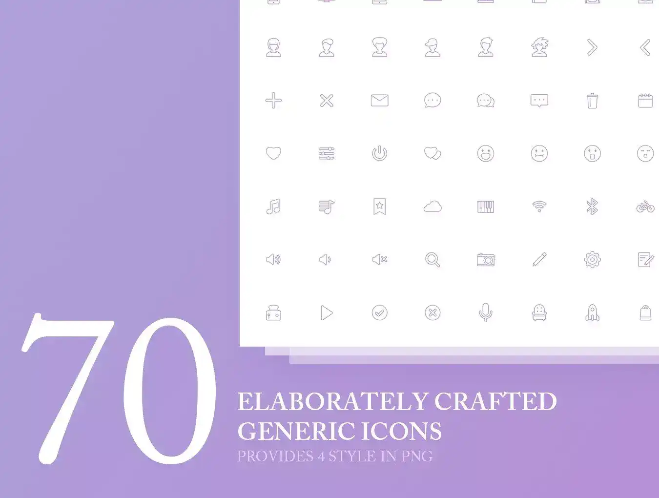 70 Universal icons with quick switching styles in Sketch & Photoshop, giving possibilities of infinite variations. Provides 4 styles in PNG format. Suitable for many design scenarios.