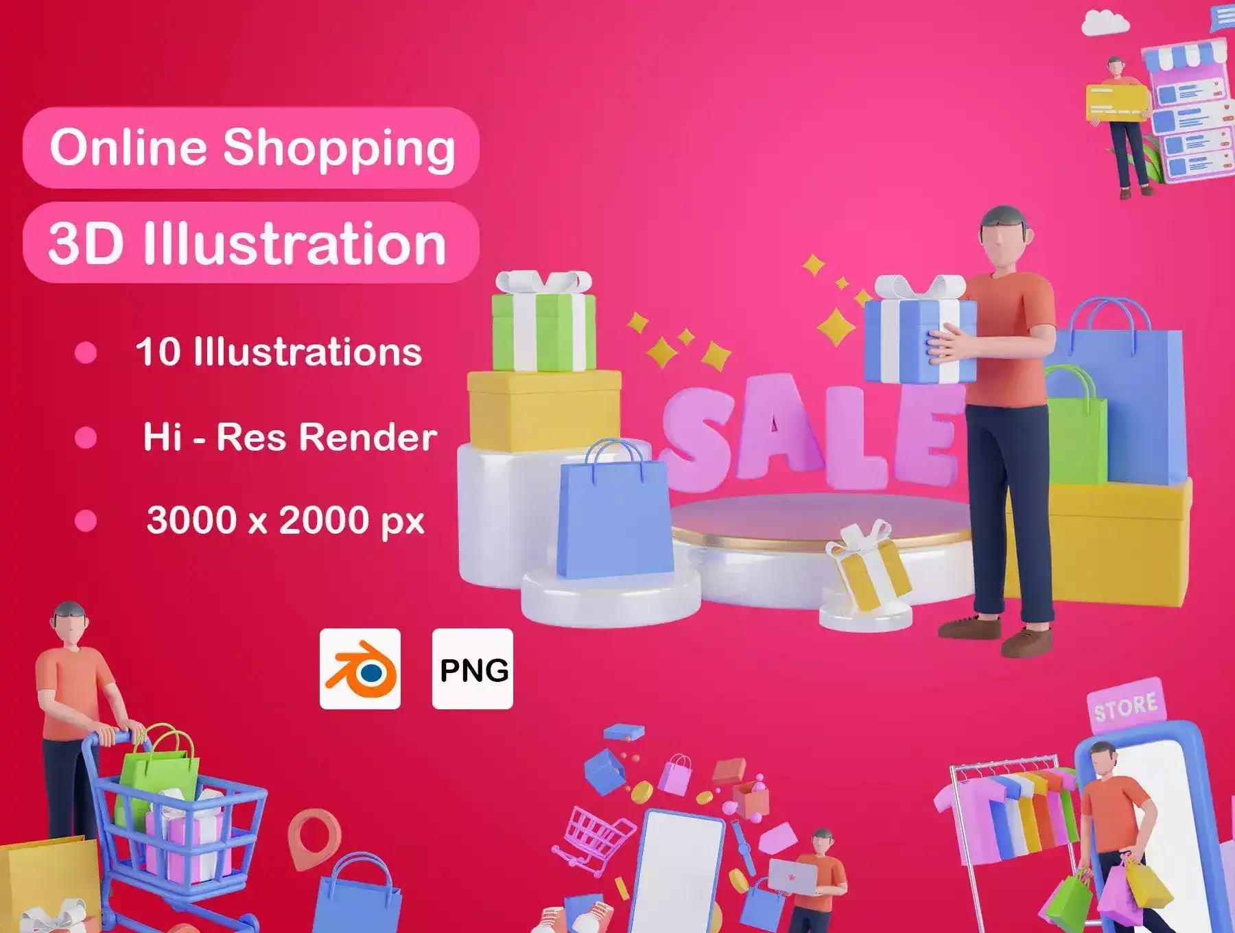 with 3D Online Shopping design you can use it for various purposes such as making banners, websites, promotions, ui & ux, posters and much more