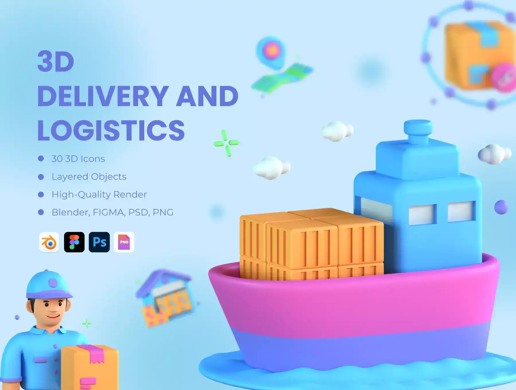TL;DR: 30 3D delivery and logistics icons. Niche-specific, fully customizable. 4 formats.