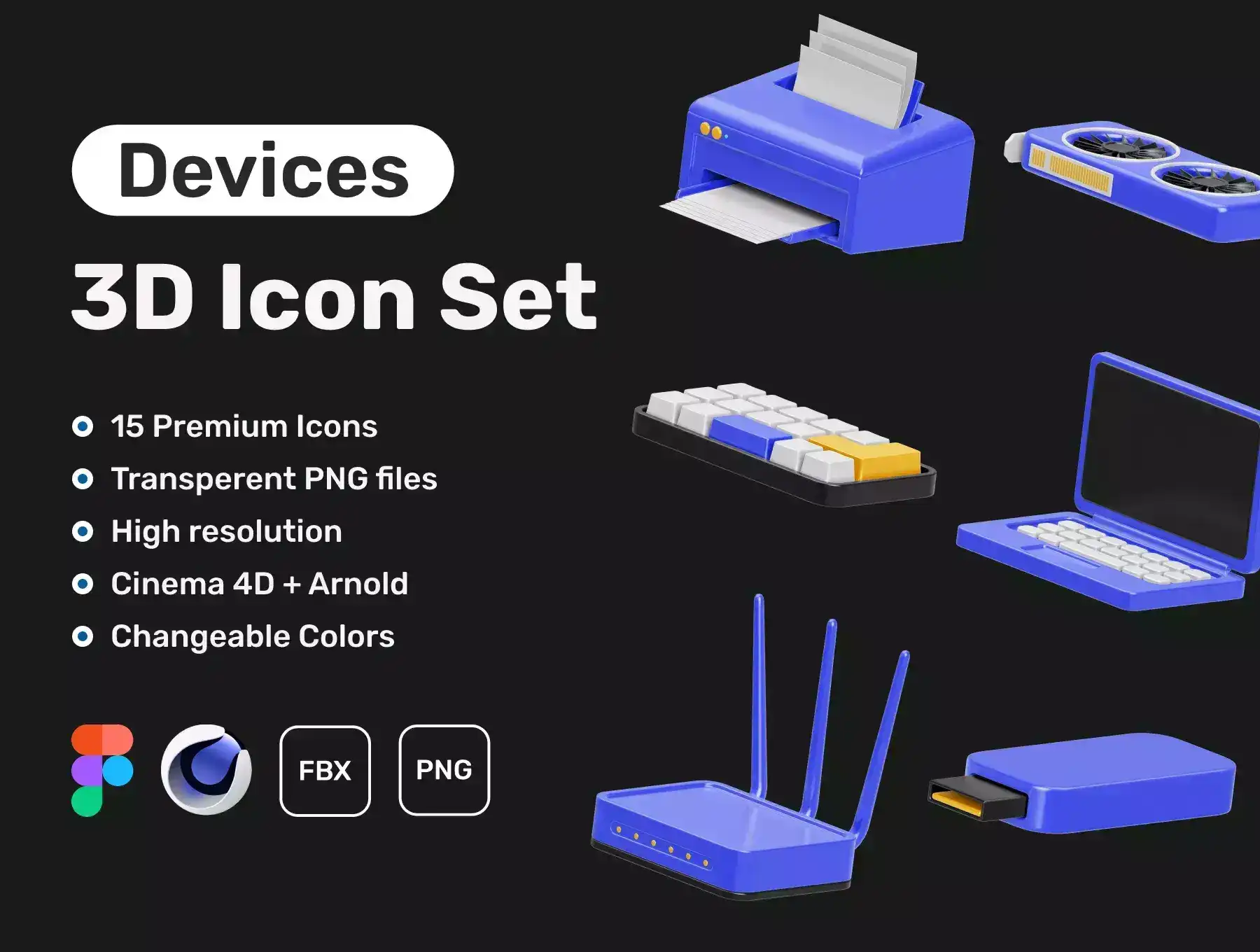 Devices is a set of unique 3D icons suitable for any project. With these icons, you can easily complement your unique product.