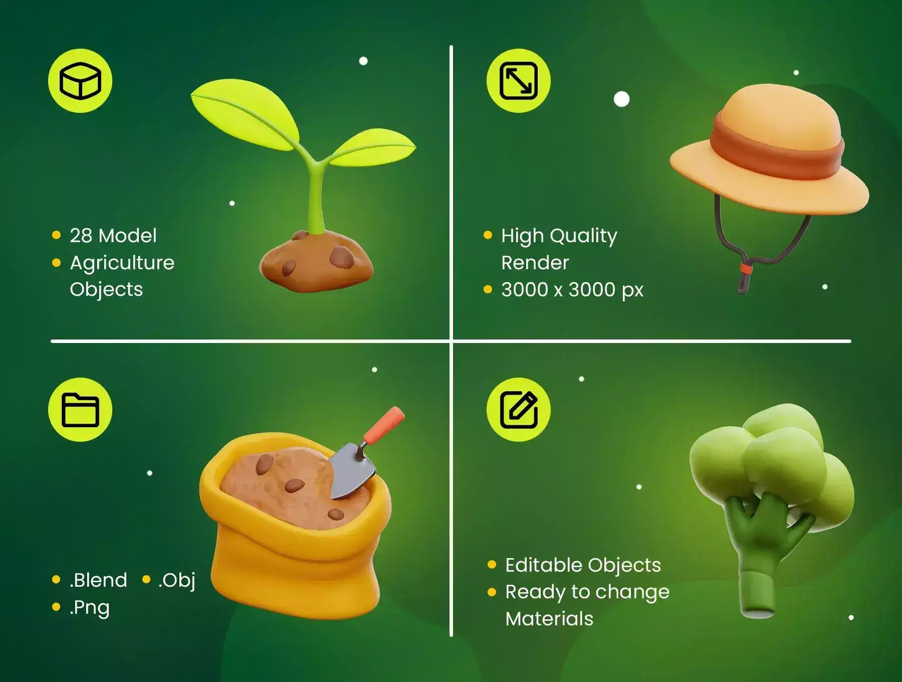 Agriculture 3D Icons can be used for design needs, animation, web design, UI design, presentation slides, posters, and others.Perfect for completing your Design.✨